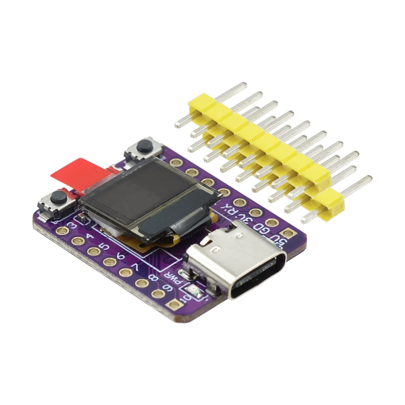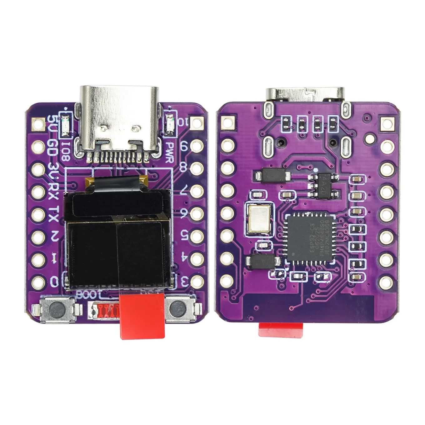 Experience seamless IoT development with our ESP32-C3 OLED Development Board, featuring a vibrant 0.42-inch OLED display, compact 24.8mm by 20.45mm dimensions, and supporting 2.4GHz Wi-Fi and Bluetooth 5.0 Low Energy. Powered by low-voltage input (3.3V to 6V) via external power or USB Type-C, it offers multiple communication interfaces including 1x I2C, 1x SPI, 2x UART, and 11 GPIO pins with PWM and 4 ADC channels, all built on RISC-V architecture with 4MB SPI flash. Perfect for wearable tech, smart home, and low-power IoT projects, its sleek purple design, red indicator, blue onboard LED, and accessible reset and start buttons make it both stylish and highly functional for your innovative ideas.