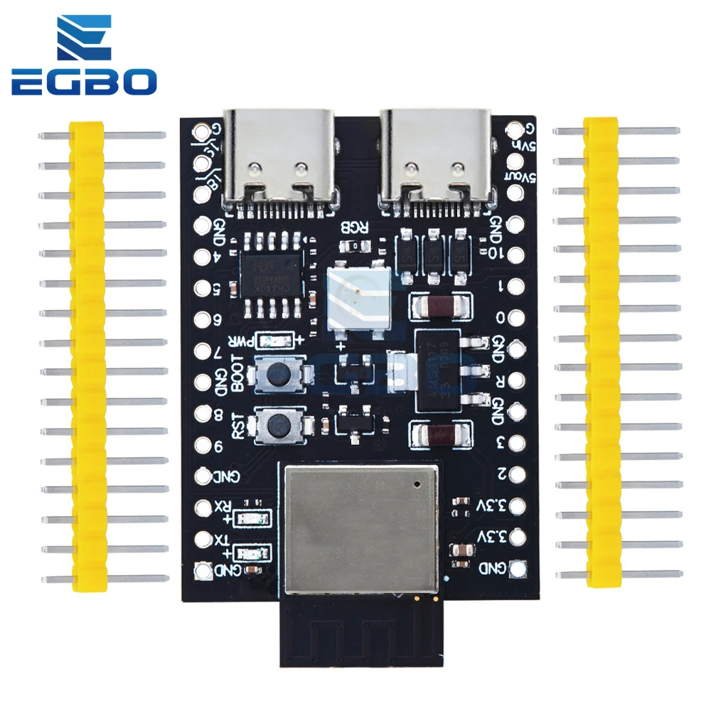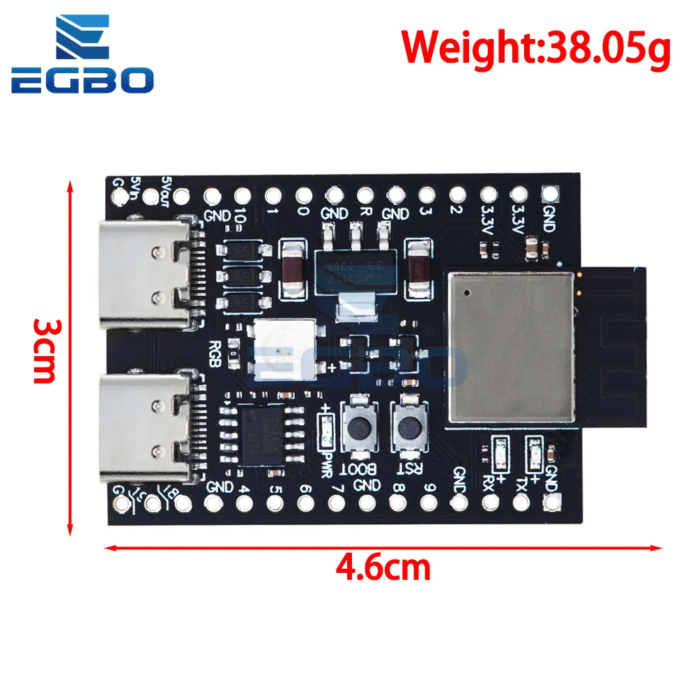 - The development board's matte black PCB measures precisely, with dual Type-C ports for high-speed data transfer and power. Its modern design combines functionality with sophisticated aesthetics, perfect for professional projects.