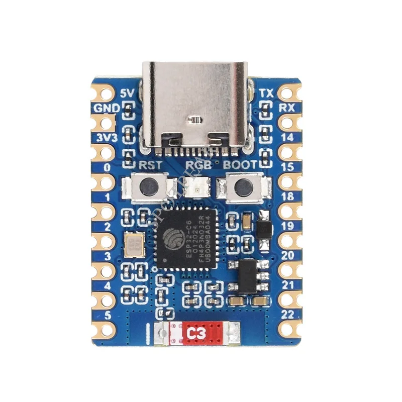 Experience the power and versatility of this compact ESP32-C6 Mini Development Board, designed for seamless integration into your projects. Its vibrant blue finish, combined with crisp white silkscreen markings, offers an attractive, modern aesthetic that’s both stylish and functional. Ideal for developers, hobbyists, and IoT enthusiasts, this board provides a perfect balance of technical features and contemporary design. The powerful ESP32-C6FH4 chip supports dual processors, reaching up to 160 MHz, ensuring efficient performance for your wireless communication and data processing needs. The inclusion of innovative components like a colorful RGB LED and ceramic antenna makes this board a standout tool for your next innovation. Build with confidence—this device blends attractive design with top-tier functionality.