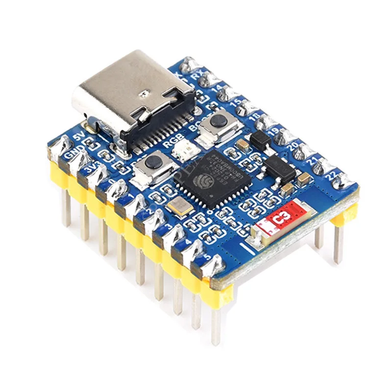 - Features include RGB LED indicator, pin headers for easy expansion, multiple low-power modes to optimize energy consumption, and compatibility with ESP-IDF, MicroPython, and other development tools for flexible programming options.