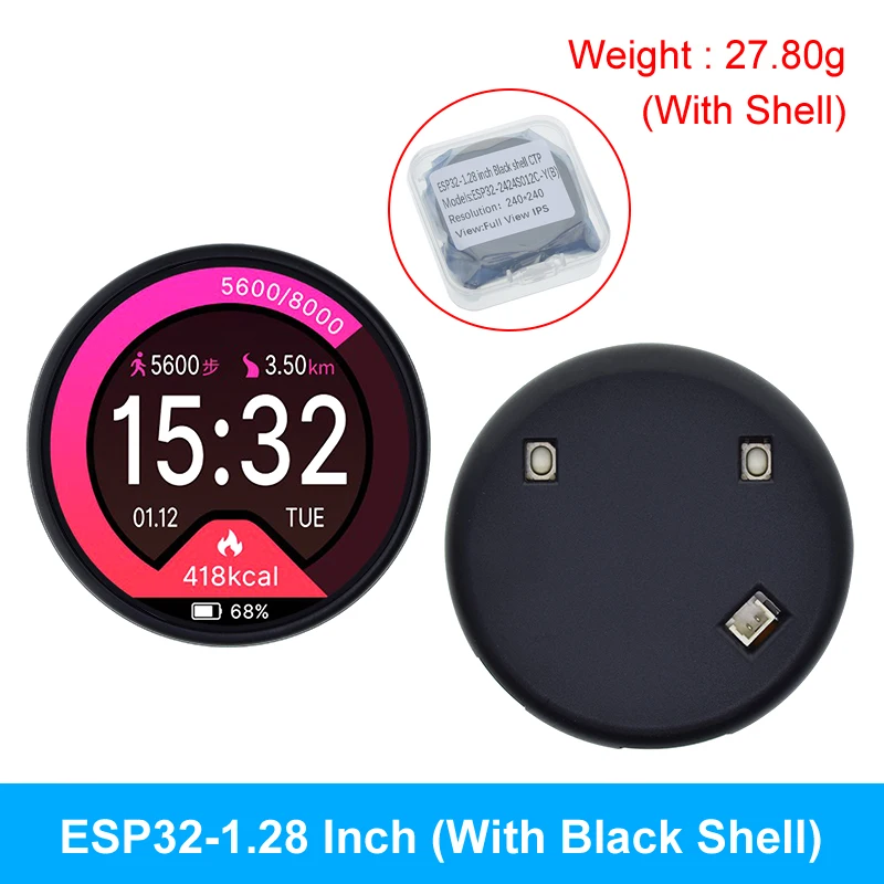 Experience seamless connectivity and vibrant visuals with the ESP32 LVGL Development Board featuring a 1.28-inch IPS LCD TFT display with a resolution of 240×240 pixels. The compact, sleek design incorporates a touch interface and support for WiFi and Bluetooth, making it ideal for smart device projects and computer applications. Built with a customized SMD package, the module is available in versions with or without a black shell, offering a modern aesthetic. Its efficient voltage regulator ensures stable operation, making this development board a versatile and reliable choice for innovative enthusiasts and professionals alike.