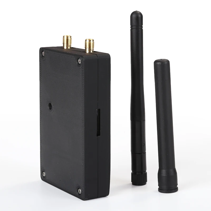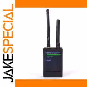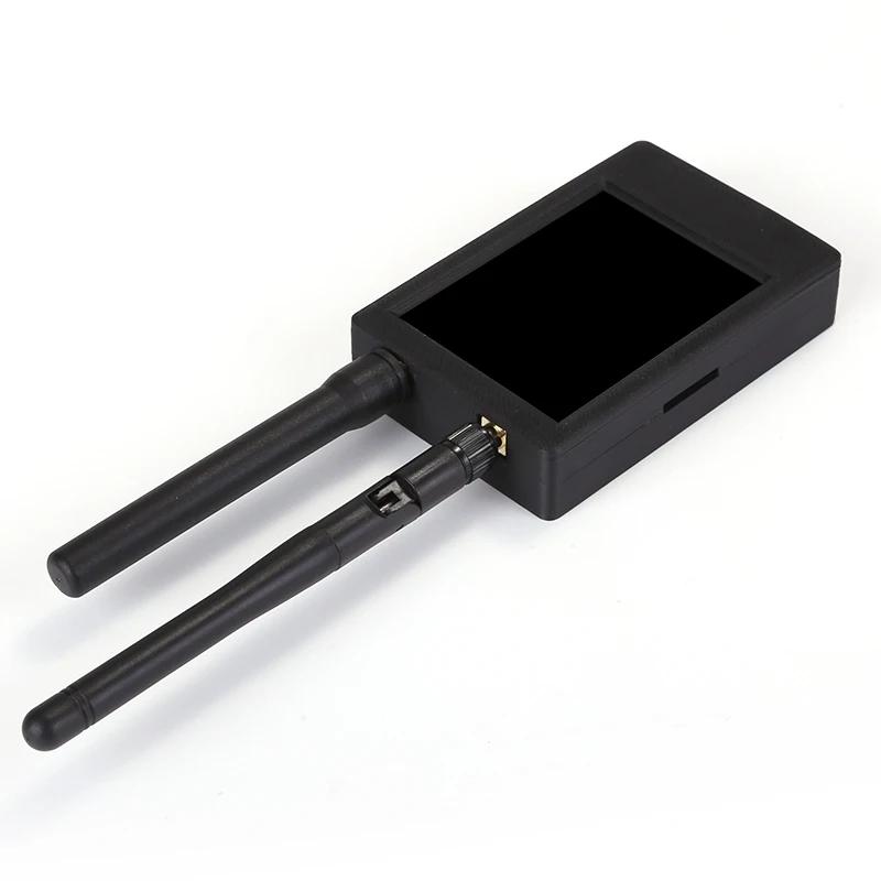Experience powerful wireless connectivity with this compact handheld device featuring a 2.8-inch resistive touchscreen display, a 500mAh rechargeable lithium battery with a 1-2 hour charging time, and support for 2.4GHz WiFi, Bluetooth, and GPS. Its sleek black plastic exterior, showcased in a modern 3D case design, includes two external antennas: a tall, 20dBi active GPS antenna and a shorter 8dBi antenna for 2.4GHz signals. Equipped with built-in firmware version 1.8.12 and a TF card slot, this versatile tool offers reliable performance for professional and technical applications in a sturdy, minimalist package.