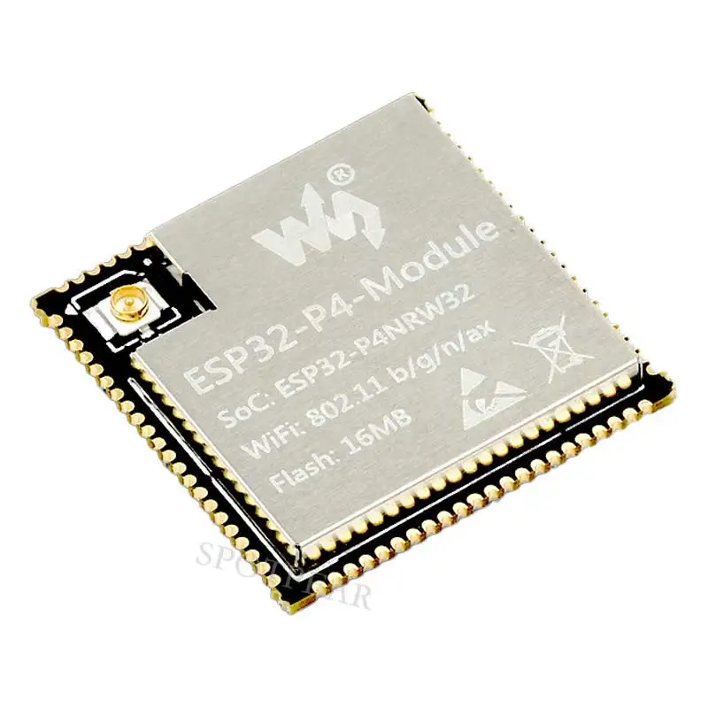 The ESP32-P4 Module features a dual-chip design based on ESP32-P4 and ESP32-C6, with high-performance 32-bit RISC-V dual-core and single-core processors, 32MB PSRAM, and 16MB onboard NOR Flash. Supporting 2.4GHz Wi-Fi compliant with 802.11 b/g/n/ax standards, it offers 128 KB high-performance ROM, 16 KB low-power ROM, 768 KB L2 memory, 32 KB SRAM, and 8 KB TCM. Equipped with advanced image and voice processing—including JPEG Codec, Pixel Processing Accelerator, Image Signal Processor, and H264 encoder—plus security features like Secure Boot, Flash Encryption, cryptographic accelerators, and TRNG. Perfect for IoT, image recognition, voice interfaces, HMI, and industrial applications.