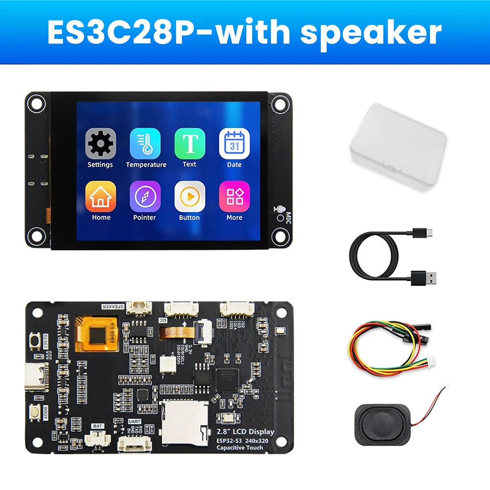 Experience powerful performance with this ESP32-S3 development board featuring a vibrant 2.8-inch TFT LCD display with a resolution of 240×320 pixels, supporting up to 262K colors (RGB666). Equipped with a dual-core processor running up to 240MHz, 384KB ROM, 512KB SRAM, and 16MB external flash, it offers seamless connectivity via Wi-Fi 2.4GHz and Bluetooth v4.2. The capacitive touch screen, measuring 2.8″ with a 45.20mm by 59.45mm active area, provides intuitive human-computer interaction. Additional features include a microphone, external speaker, RGB indicator lights, micro SD slot, Type-C port for power and programming, and versatile interface options for advanced AI, IoT, and automation projects.