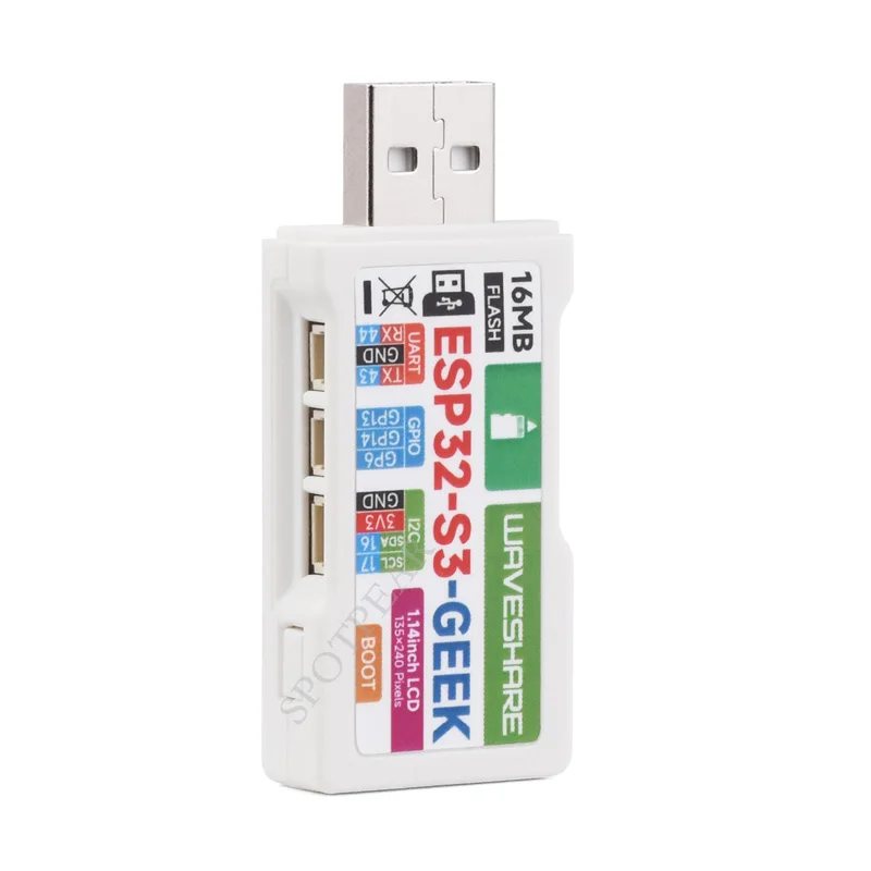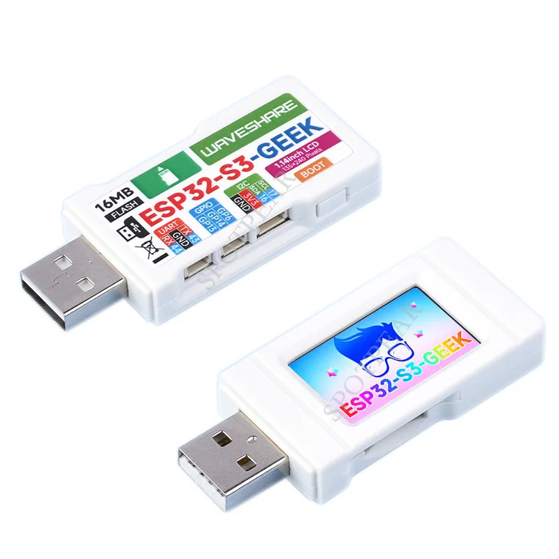 Experience versatile embedded development with the ESP32-S3 GEEK Development Board, featuring a compact design housed in a sleek plastic case. It integrates a vibrant 1.14-inch IPS LCD display with 240×135 pixels and 65K colors, offering vivid visuals. Powered by the ESP32-S3R2 dual-core Xtensa® 32-bit LX7 processor running at 240 MHz, it includes 512KB SRAM, 384KB ROM, 2MB PSRAM, and 16MB onboard Flash memory. Supports 2.4GHz WiFi with data rates up to 150 Mbps, Bluetooth LE with 20dBm high power mode, and multiple interfaces such as USB-A, UART, GPIO, I2C, and a TF card slot. Ideal for creative projects and learning.