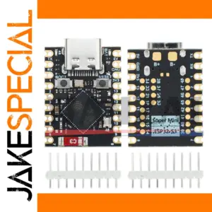 Experience the versatility of the Bolantedz ESP32-S3 SuperMini development board, designed for seamless WiFi and Bluetooth connectivity in a compact, sleek black PCB layout. Its rectangular form features a dense array of surface-mounted components, a prominent silver USB-C port, and precisely labeled pin headers for easy connectivity. The minimalist back side maintains a clean look with mounting holes and subtle labels. Operating at 1 V with a power dissipation of 1 W and an operating temperature of 1°C, this module is ideal for a wide range of applications, combining technical sophistication with a modern, professional aesthetic that easily integrates into your projects.