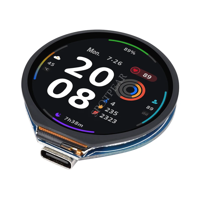 Experience advanced development with the ESP32-S3 model, featuring a sleek 1.28-inch circular capacitive touchscreen LCD supporting 240×240 pixels and 65K colors. Powered by a high-performance Xtensa® 32-bit LX7 dual-core processor running at up to 240 MHz, it includes 512KB SRAM, 384KB ROM, 2MB PSRAM, and 16MB external Flash. Integrated with the QMI8658 six-axis IMU (accelerometer and gyroscope), it offers reliable motion detection. Connectivity options include 2.4 GHz Wi-Fi and Bluetooth 5 LE with an onboard antenna. The versatile Type-C interface supports USB 1.1, and the board features a lithium battery charging interface, USB full-speed serial communication, and six GPIO pins, available with or without touch functionality for seamless integration into your projects.