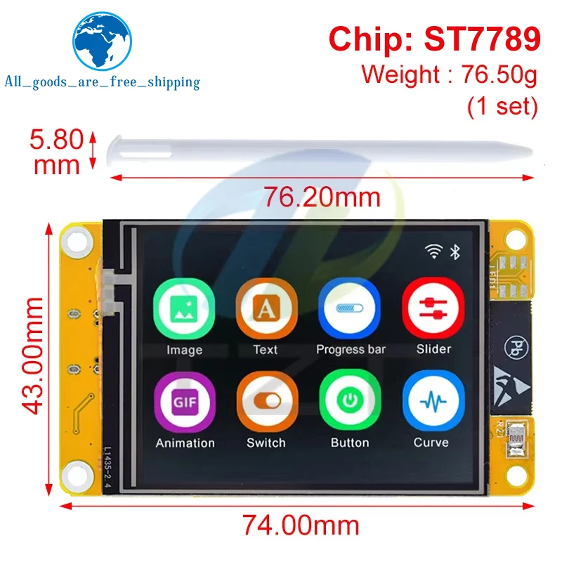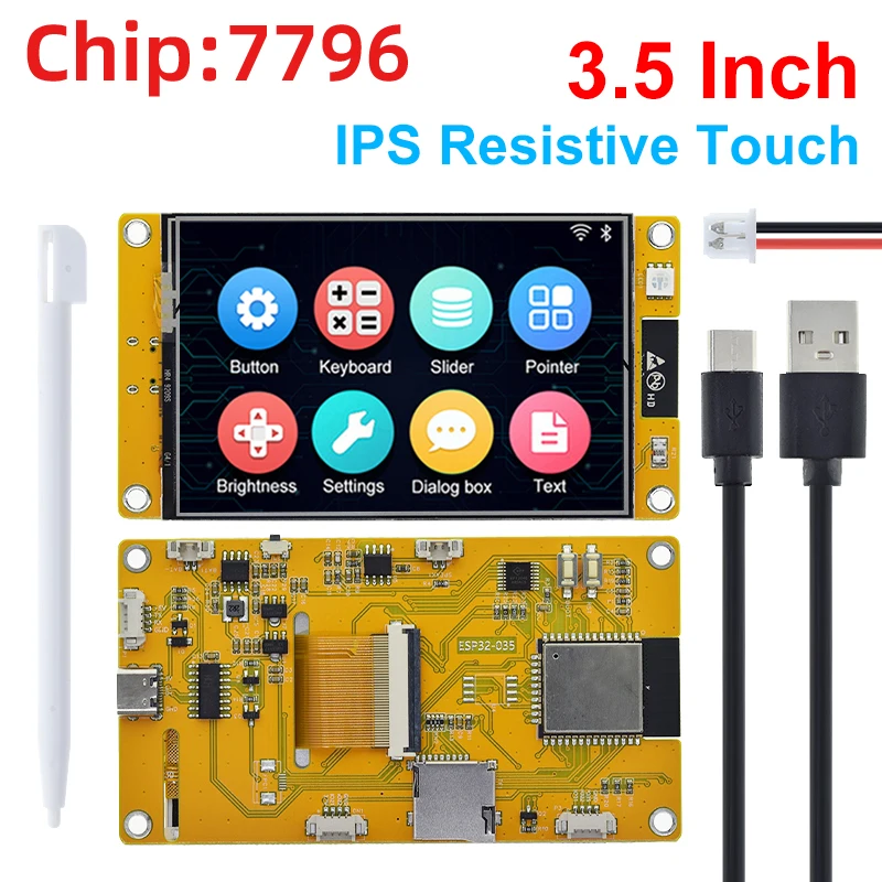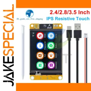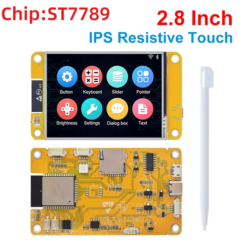 Experience advanced control with this TZT ESP32 development board, featuring an integrated Wi-Fi and Bluetooth-enabled ESP32 microcontroller. It offers a high-quality TFT LCD display, available in three sizes: 2.4-inch and 2.8-inch models with ST7789 drivers, and a 3.5-inch model with ST7796 driver, all with a resolution of 240×320 pixels. The touch screen provides smooth, responsive operation with vivid colorful graphics displayed on a glossy surface. Designed in a sleek black and yellow rectangular form, this SMD package board supports operating voltages from 3.3V to 5V and is perfect for voltage regulation projects, offering both modern aesthetics and reliable functionality for enthusiasts and professionals alike.