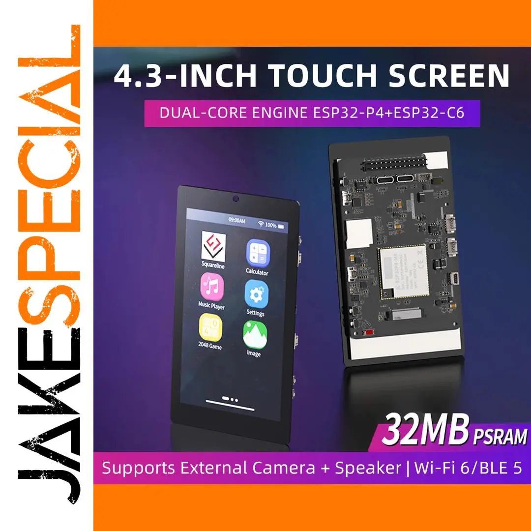 Experience advanced embedded system capabilities with this ESP32P4 + ESP32-C6 development board featuring a 4.3-inch IPS TFT display with 800×480 pixel resolution and a 500:1 contrast ratio. The device boasts a sleek black design, a capacitive touch screen for intuitive control, and 32MB of PSRAM for smooth performance. Enjoy seamless connectivity with WiFi 6 and Bluetooth 5 support. It comes with an optional ABS case for added protection, or without case for versatile installation in your projects. Perfect for IoT, automation, and innovative prototype development, this compact and sophisticated platform combines high-tech features with a modern aesthetic to elevate your embedded projects.