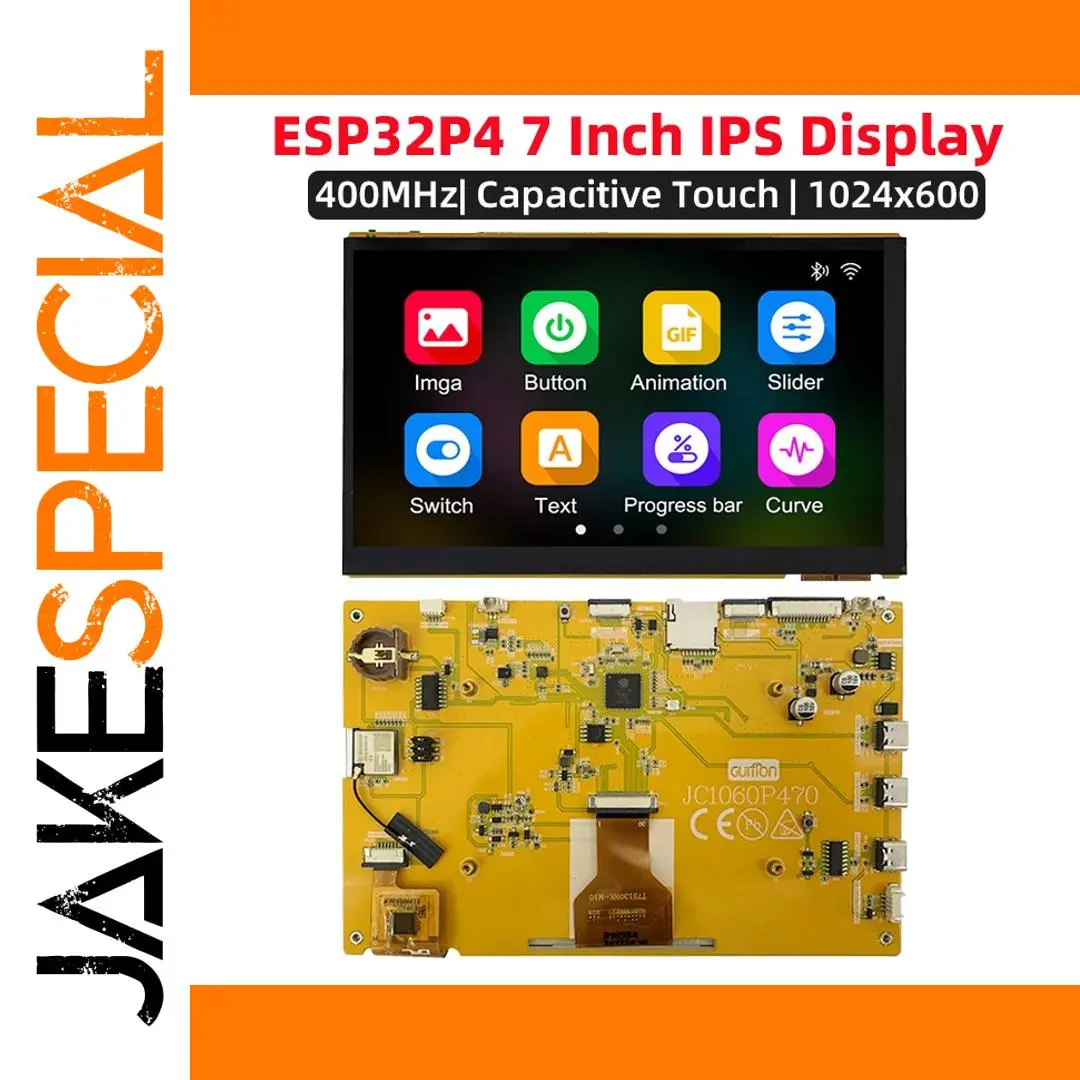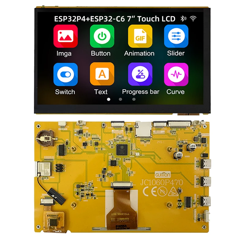 Experience advanced control and stunning visuals with this ESP32P4 + ESP32-C6 development board featuring a vibrant 7-inch IPS TFT touchscreen display with a resolution of 1024×600 pixels and a 500:1 contrast ratio. The capacitive touch interface offers smooth, responsive interactions, ideal for creating graphical interfaces using LVGL and AI applications. Equipped with 32MB PSRAM and 16MB flash memory, the board supports WiFi and Bluetooth connectivity, making it perfect for complex IoT projects. Its sleek design and high-resolution display allow you to build professional-grade interfaces and innovative prototypes seamlessly, bringing your ideas to life with precision and clarity.
