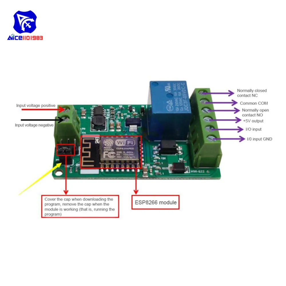 - Features a 10A 220V relay with one normally open and one normally closed contact, supporting a maximum switching voltage of 220V AC with safe, reliable operation.