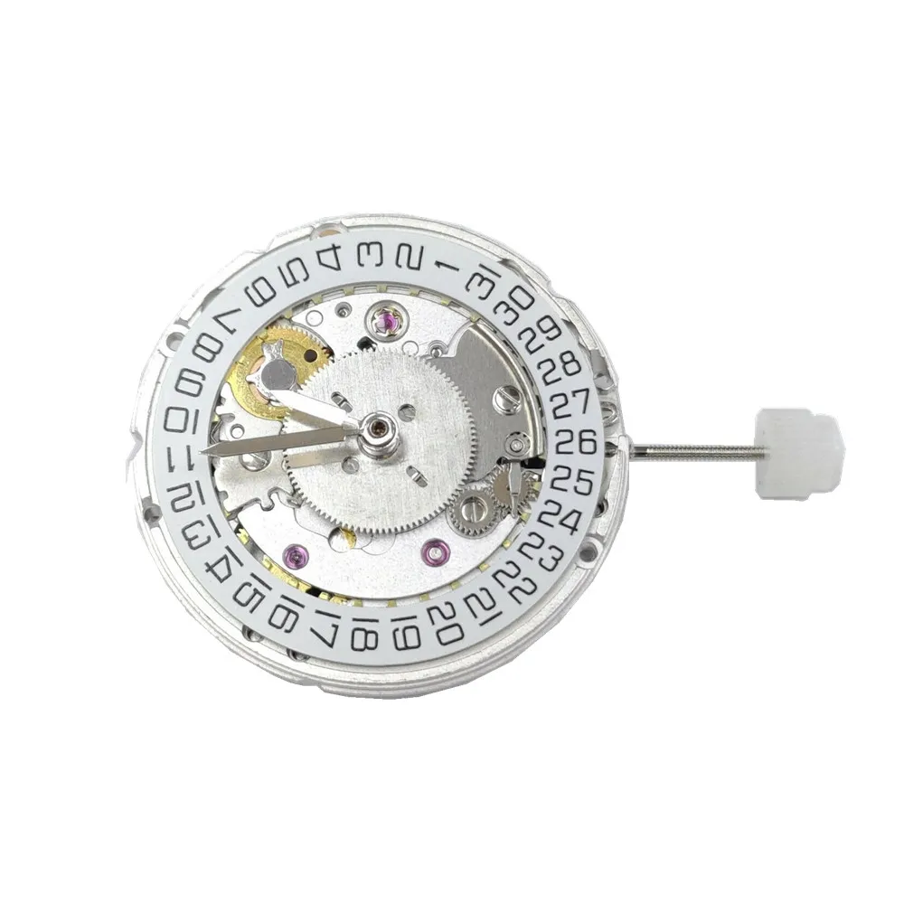 This high-quality automatic mechanical watch movement features 25 jewels, a 28,800 vibrations per hour (4Hz) frequency, a diameter of 25.60 mm, and a height of 5.67 mm, offering a reliable 40-hour power reserve. It is equipped with a date wheel at the 3 o’clock position, with a white disc and black numerals, designed for easy replacement in ETA 2836-2 and 2824 GMT watches. Weighing only 17 grams, the movement has a sleek white finish and showcases intricate internal components through its open design, making it ideal for watch repair, customization, or accessory upgrades for enthusiasts and professional watchmakers alike.