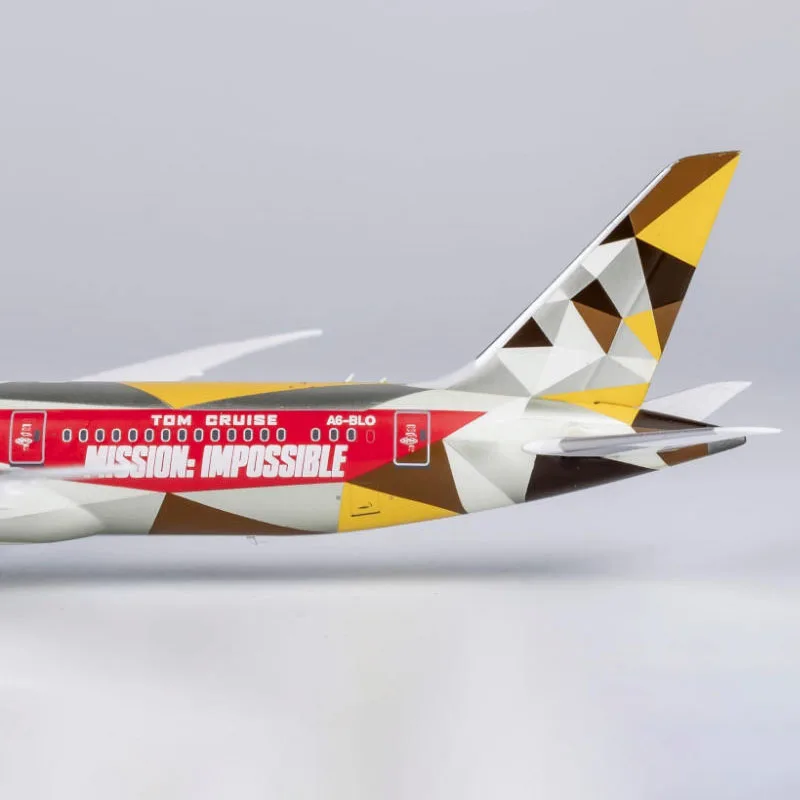Celebrate your love of aviation with this exquisitely crafted diecast model of a Boeing B787-9 airplane at a 1:400 scale. Measuring approximately 15.7 cm in length and 15 cm in wingspan, the model features a sleek, white alloy fuselage adorned with vibrant branding details, including a shimmering gold Etihad logo on the tail fin and matching gold airline lettering near the front. Small, detailed windows and doors add realism, while a smooth, polished finish enhances its premium appearance. Designed as a static display piece, this collectible is perfect for enthusiasts seeking a striking decorative or gift item, offering a refined tribute to modern aviation craftsmanship.