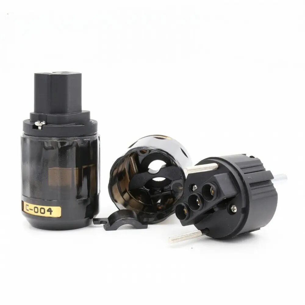 Imagine enhancing your audio setup or power connections with this sleek, durable pair of connectors. Designed for reliability and high performance, this set features a male and female EU standard power plug crafted with a matte black plastic housing for a modern, minimalistic appearance. The rhodium-plated contact points ensure excellent durability, corrosion resistance, and maintained conductivity over time. Made from anaerobic phosphor bronze with surface polishing, these connectors are capable of handling voltages up to 250V at 10A or 125V at 15A. The design supports wires with diameters from 6.5mm to 17.0mm, accommodating wires up to AWG10 (5.5 sq). Ideal for high-fidelity audio, hi-fi, and professional power applications, these connectors offer seamless connection quality and aesthetic appeal.