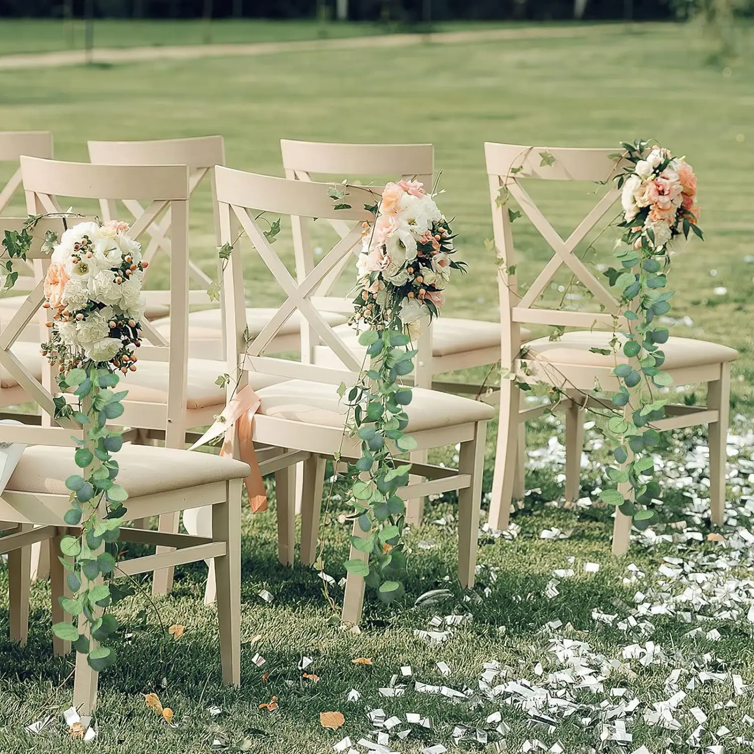 Transform your outdoor space with this elegant eucalyptus garland, crafted from eco-friendly, healthy PE material that replicates realistic foliage. Comprising 12 hanging branches, each designed with rounded, overlapping green leaves, it offers a natural, lush appearance perfect for weddings, parties, fireplace screens, and outdoor decor. The lightweight, flexible branches allow for easy hanging or draping, creating a vibrant and sophisticated ambiance. Ideal for adding a touch of organic beauty to your garden, porch, or event setting, this durable garland ensures a fresh, natural look without harmful chemicals, making it a trustworthy choice for enhancing any outdoor celebration or decor.
