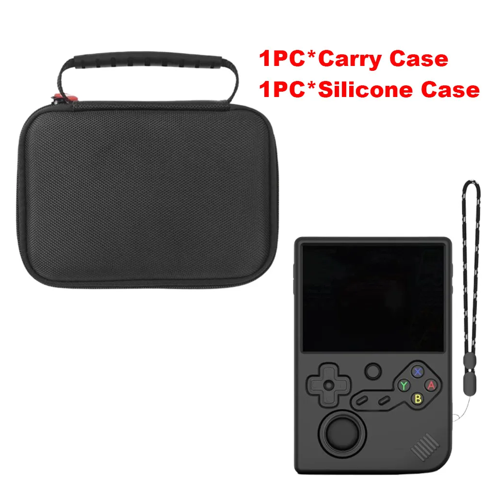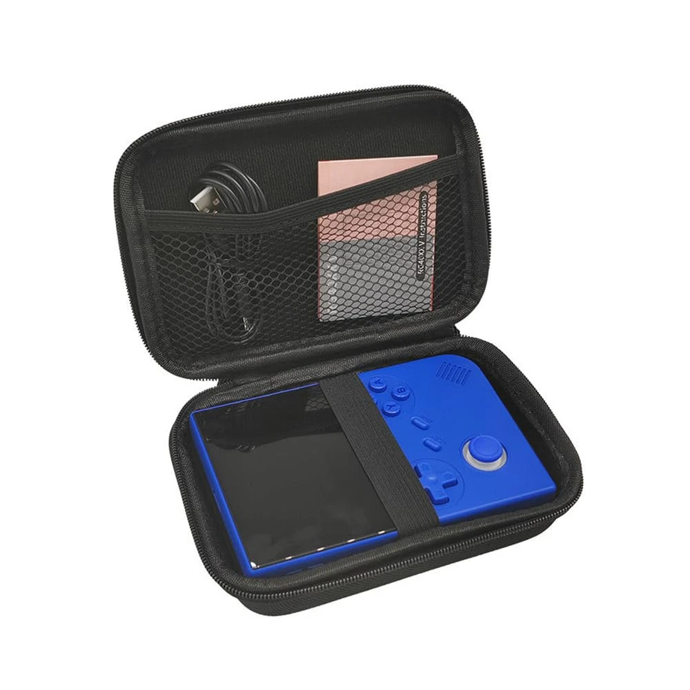 The EVA Carrying Case for the Anbernic RG40XXV is your ultimate companion for protecting and transporting your gaming console. The case features a robust black exterior with a textured finish, crafted from durable EVA material to withstand daily wear and tear. With dimensions of approximately 16cm x 12cm x 5cm, it provides a snug and secure fit for your RG40XXV console, ensuring it remains safe during your travels. The well-organized interior includes elastic straps to hold the console securely in place and a convenient mesh pocket for neatly storing essential accessories like charging cables and spare batteries.