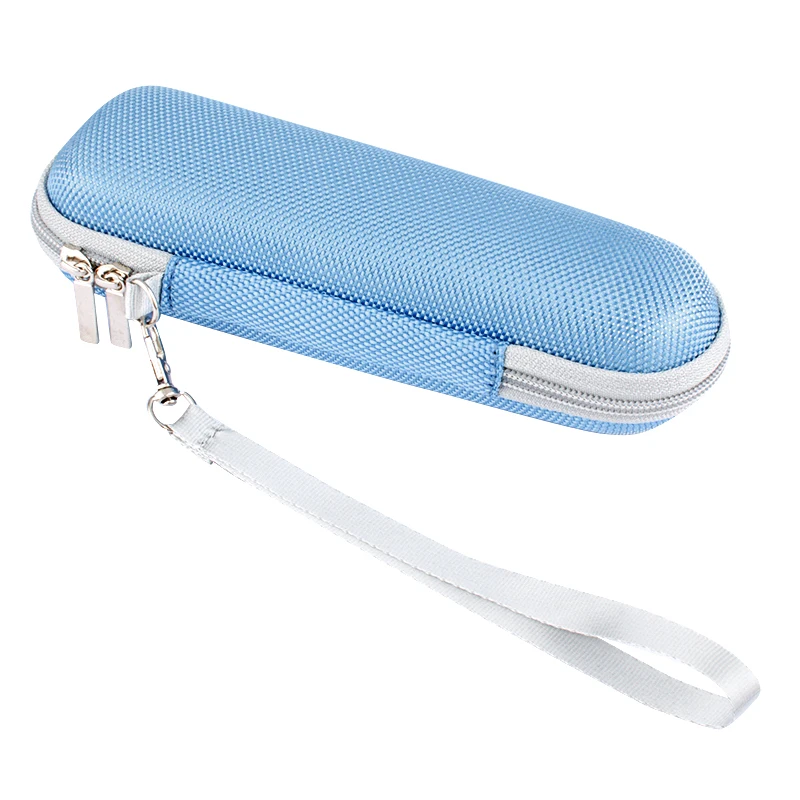 Imagine keeping your Baseus 2.4GHz wireless presenter remote with a red light pen perfectly protected and organized wherever you go. This durable, lightweight EVA storage case offers a sleek, modern design with a textured exterior available in black, blue, or pink. Its precisely molded interior features plush beige lining that snugly fits the remote and pen, preventing any internal movement. The case includes a mesh pocket inside the lid for small accessories or cables, while a white elastic strap ensures a secure hold on your device. With a high-quality, two-way zipper, it opens smoothly to reveal a highly protective, portable solution that combines style and functionality for your professional needs.