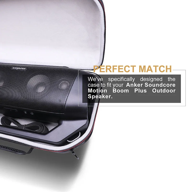 - Precisely tailored to fit the Anker Soundcore Motion Boom Plus, with enough space to store and carry your outdoor speaker securely and safely.
