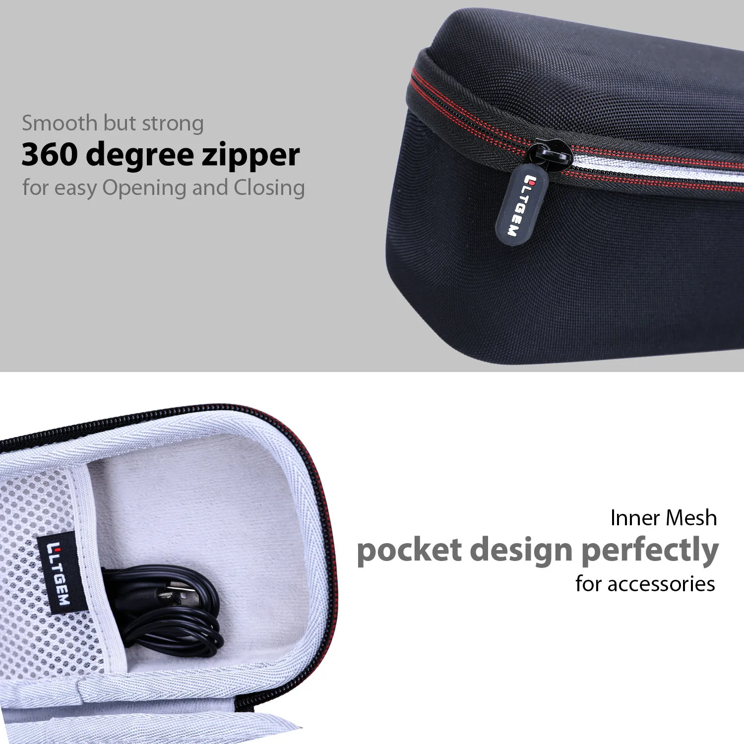 - Integrated mesh pocket with a white elastic boundary keeps your charging cable and small accessories neatly organized and within easy reach.