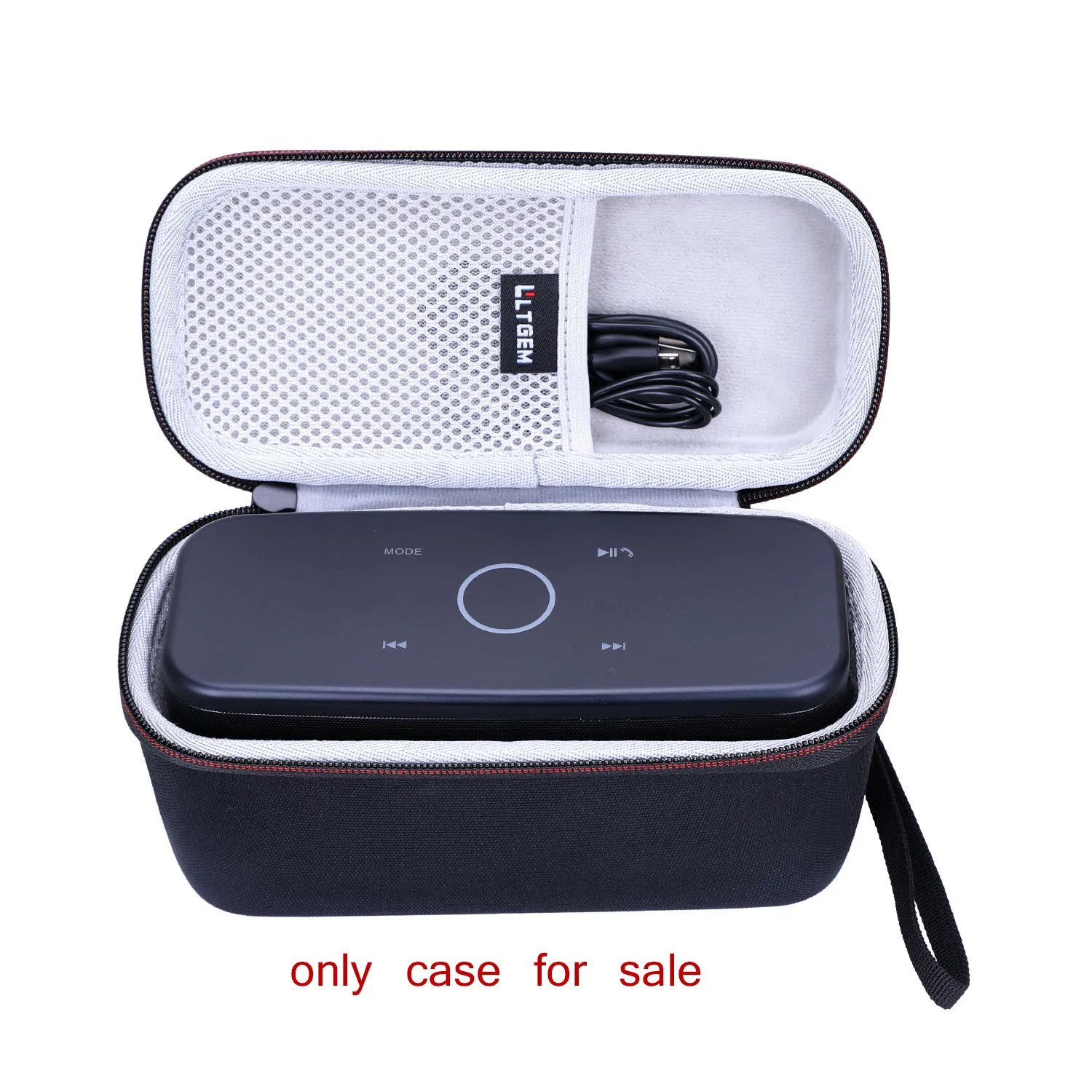 - Custom molded main compartment securely fits the black DOSS SoundBox Plus Bluetooth speaker, preventing movement and potential damage during transport.