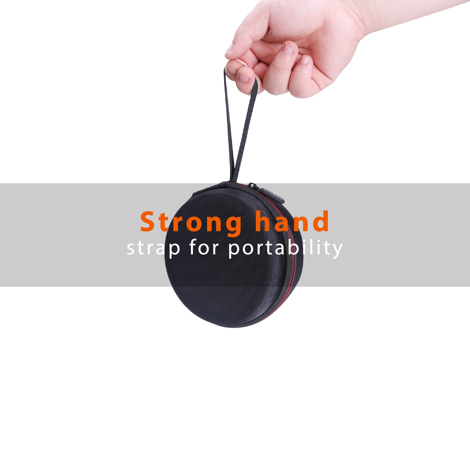 Protect your Bluetooth speaker with this compact and stylish hard case. Designed for travel, it features a robust black exterior with a vibrant red accent along the zipper. Inside, you'll find a secure compartment for your speaker and a gray mesh pocket that holds essential cables for charging and audio connections. The structured design ensures your device stays safe and organized, making it perfect for both daily use and on-the-go adventures. Visualize yourself confidently taking your device anywhere, knowing it’s safeguarded in this durable case.
