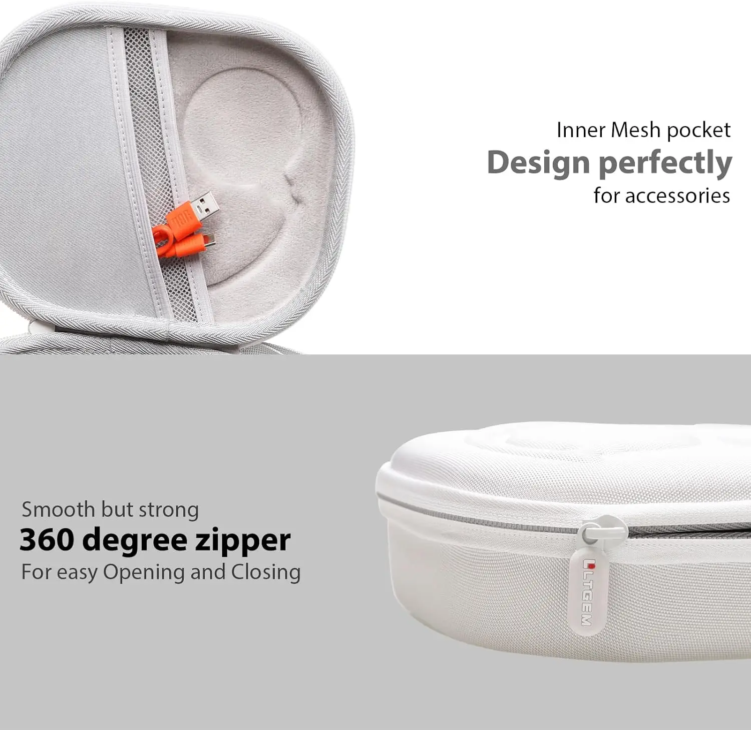 This hard case is meticulously designed specifically for your JBL headphones, measuring 7.8 x 6.9 x 2.5 inches. Please note that this product includes the case only, with no headphones or accessories included. It ensures premium protection for your valuable headphones with a hard EVA exterior paired with a soft lining to guard against drops, spills, and scratches. With its smooth zipper closure, accessing your headphones becomes an effortless task. The internal mesh pocket provides extra space to neatly store your cables, chargers, and adapters. Whether on the go or at home, this case will keep your headphones secure and organized.