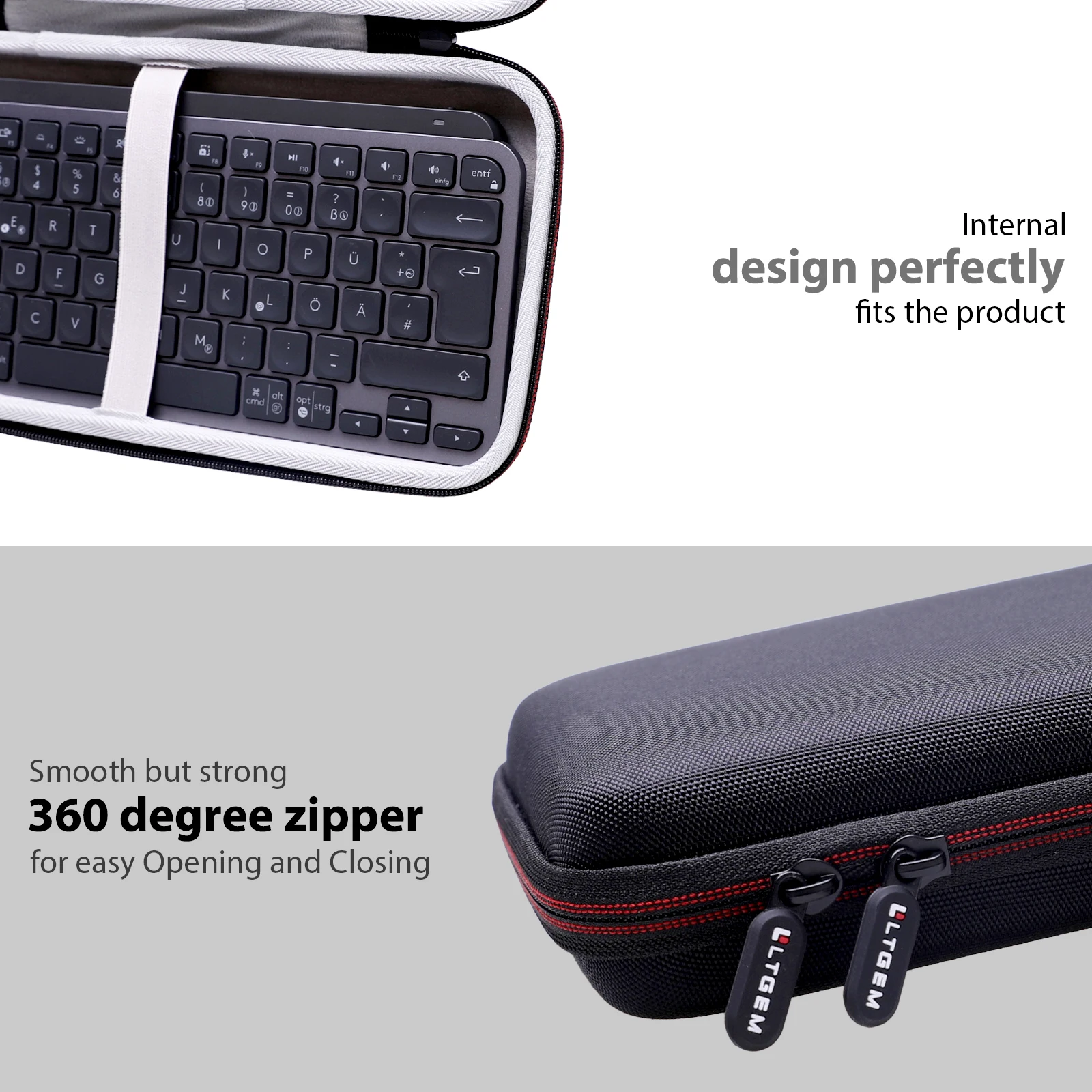 Protect and carry your Logitech MX Keys Mini minimalist wireless illuminated keyboard with this sleek, durable EVA hard case. Crafted from impact-resistant EVA and soft velvet lining, it offers double protection against scratches, dents, and drops. The precise fit, coupled with a 360° zipper for easy access, ensures your keyboard remains secure during travel or storage. A dedicated mesh pocket holds small accessories and cables, while the lightweight design and convenient hand strap make it effortless to carry. Designed exclusively for the Logitech MX Keys Mini keyboard, this case provides a stylish, organized solution to keep your valuable equipment safe and ready to use wherever you go.