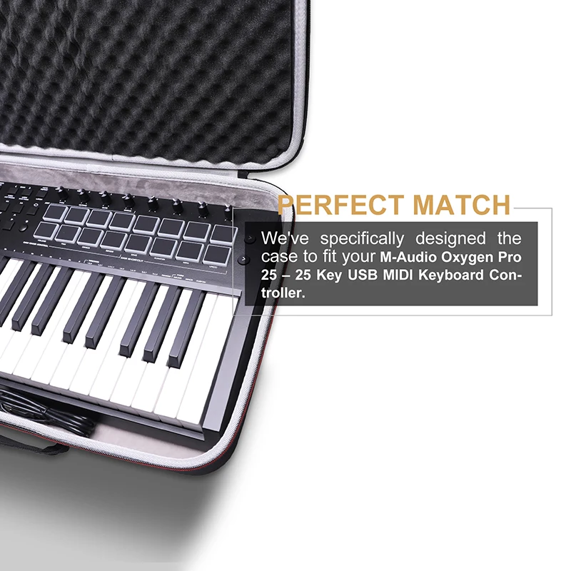 - Designed to fit the M-Audio Oxygen Pro 25 with precise 20″ L, 13″ W, 3.8″ H dimensions for a perfect snug fit.