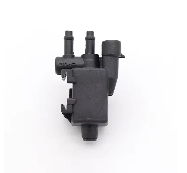 Experience the reliable performance of this high-quality evaporative emission canister purge valve, designed specifically for your vehicle’s emission control system. Crafted from durable black plastic, this component features a textured, matte finish with reinforced ridges for added strength. Its sleek rectangular body houses multiple precision-engineered connection ports: two cylindrical hose connectors positioned parallel on the top left and a larger port on the right for air intake or outlet, complemented by a small removable vent cap. The compact design ensures a perfect fit for the evaporative emission system, providing a seamless replacement that restores optimal vehicle function. Improve your vehicle’s emissions efficiency and enjoy peace of mind with this expertly manufactured part.