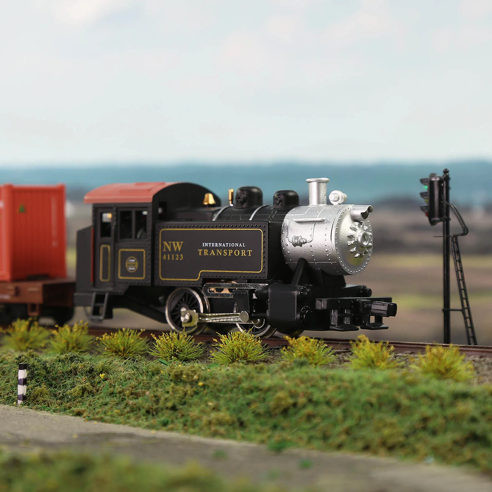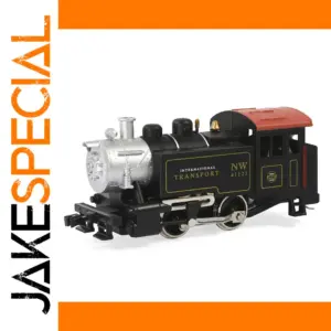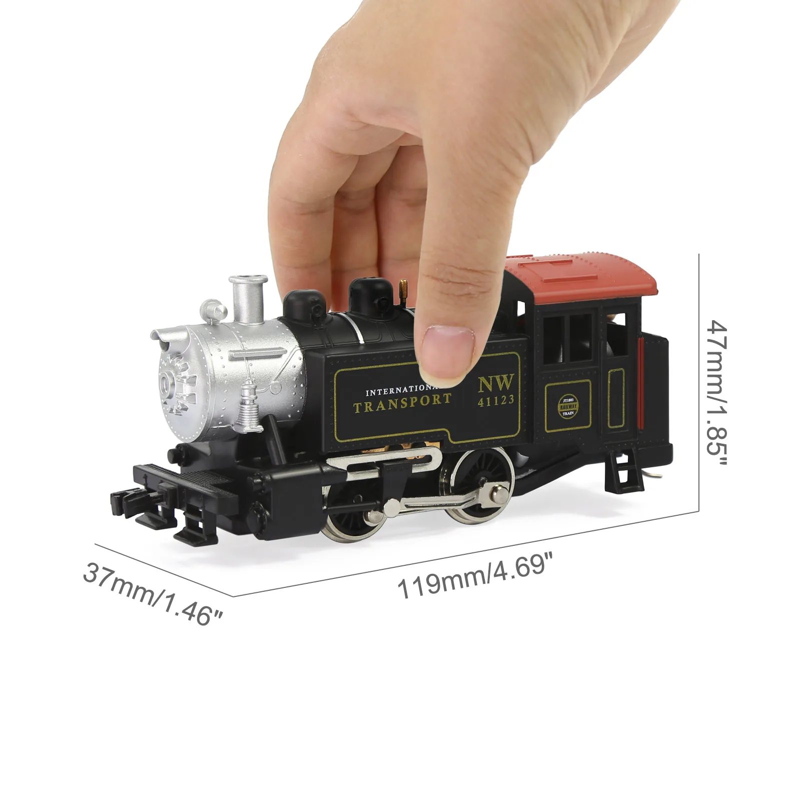 - Designed in a vintage style with a black body and silver metallic details that replicate real steam engine aesthetics. Its round smokebox and domes add to its authentic appearance.