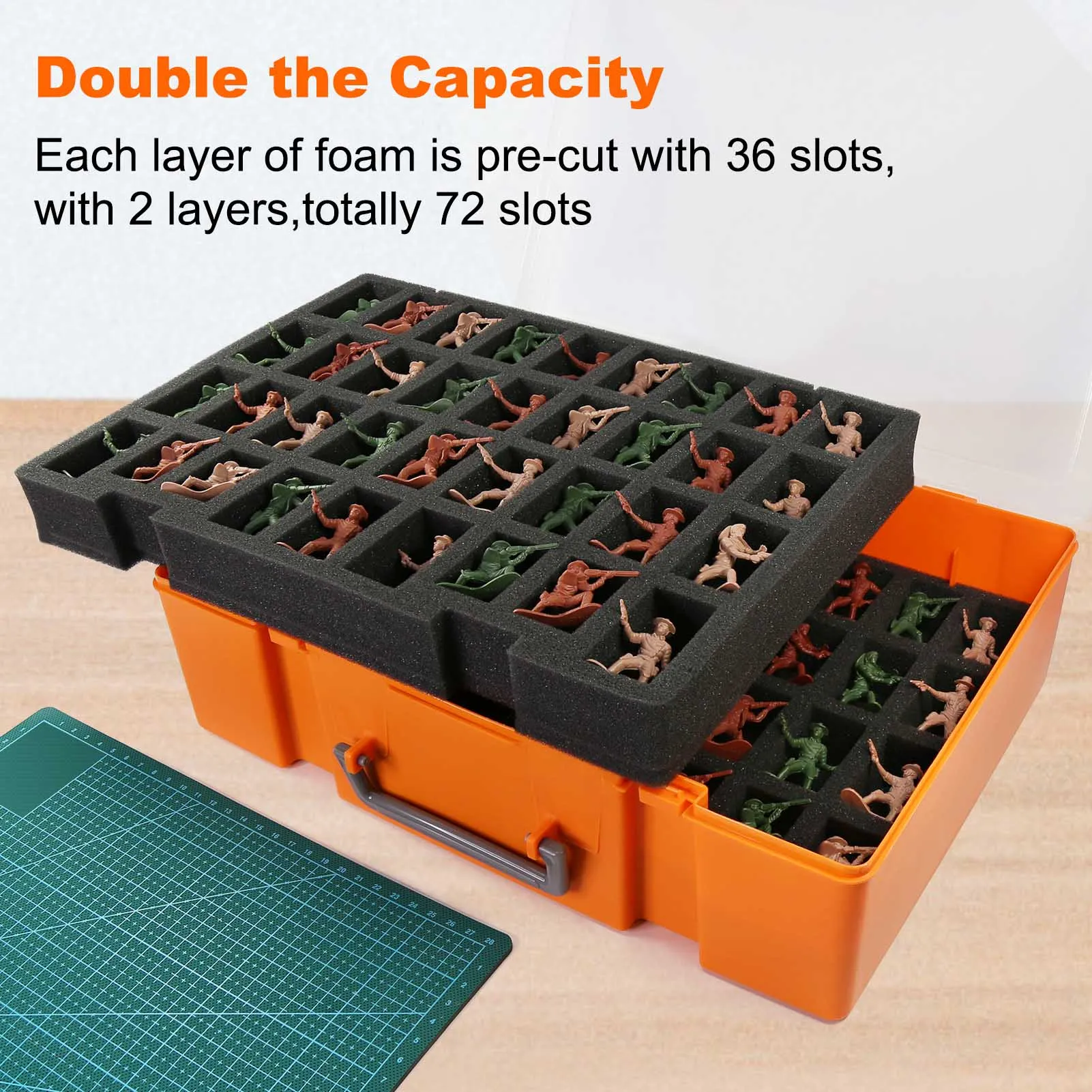 - Dual-layered design with capacity for up to 72 miniatures ensures ample space for your collection, maximizing storage while maintaining a compact footprint for convenience.