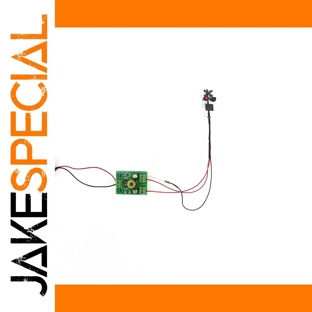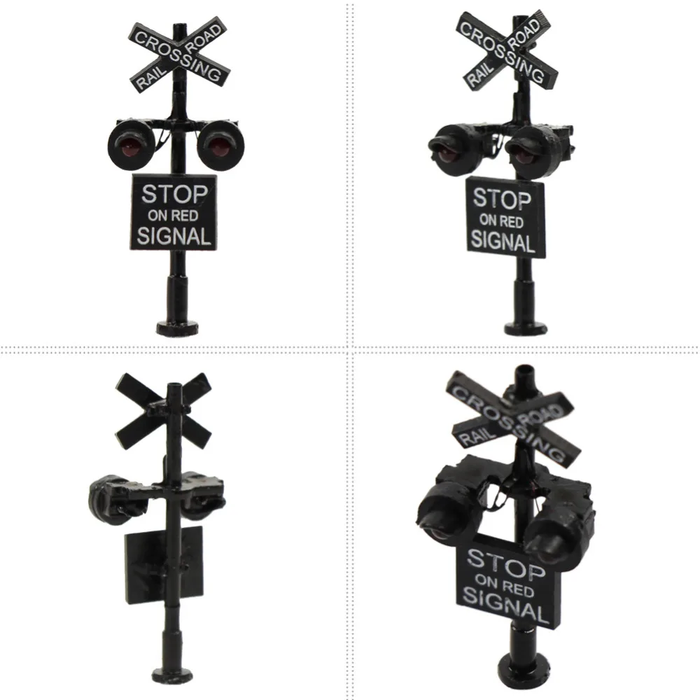 Enhance your N scale model railroad layout with this highly detailed 1:160 scale crossing signal from Evemodel. Featuring a sleek black vertical pole supporting a horizontal crossarm with four black X-shaped crossbuck signs, each illuminated by a vibrant red LED light, this miniature replica captures the realistic look of real railroad crossings. Equipped with two LEDs, a pre-wired resistor suitable for 6V to 12V DC power, and a circuit board flasher for synchronized flashing, it operates at 20mA current within the 9V to 12V DC range. Crafted from durable plastic and metal, this package includes one crossing signal and one flasher circuit board, perfect for railway enthusiasts seeking authenticity and reliability.