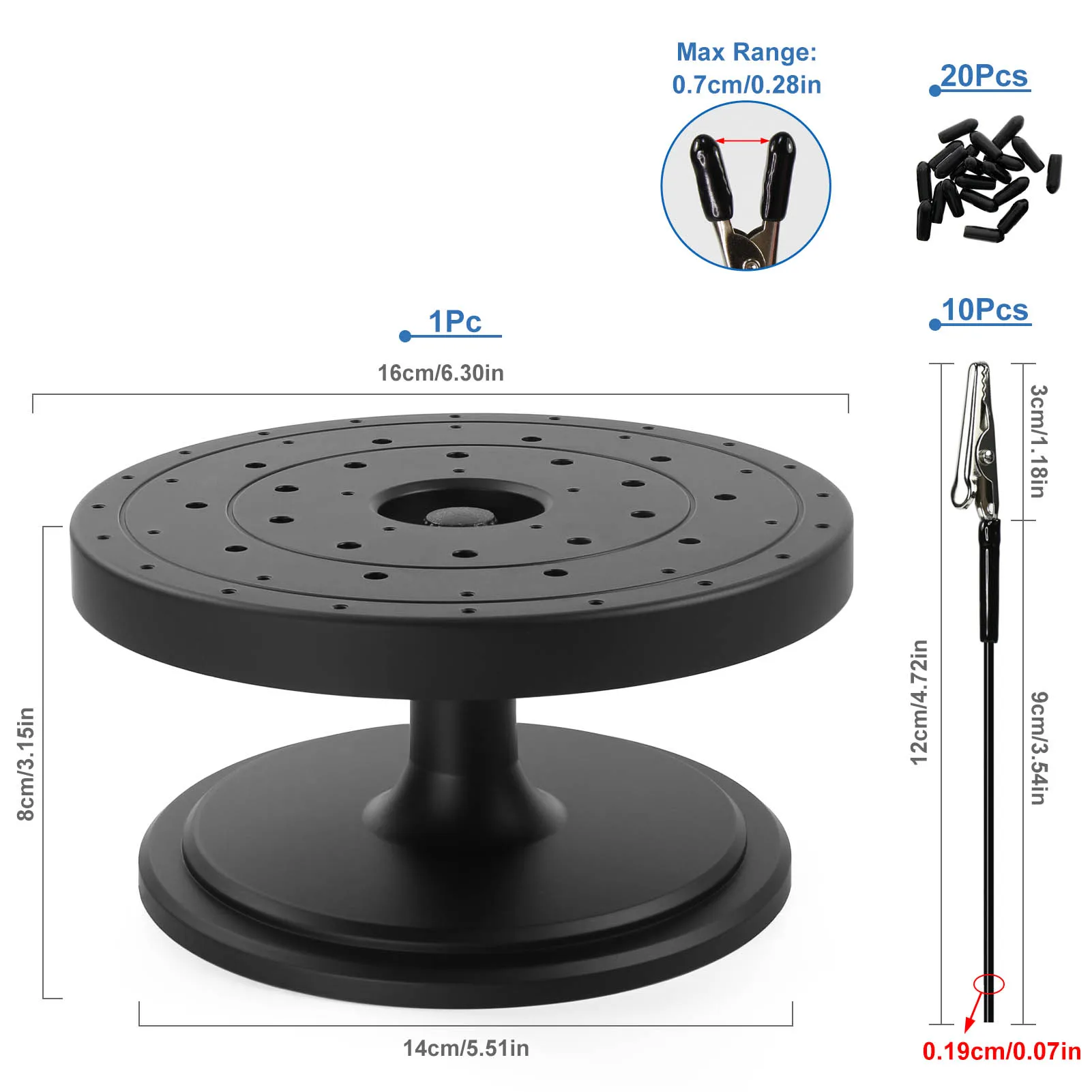 Experience precision and ease in your painting projects with this sleek, modern Evemodel rotatable painting base. Designed for airbrush coloring, it features a smooth 360° rotation that allows you to access every angle without repositioning your work. The heavy-duty construction provides exceptional stability, weighing more than typical plastic stands to resist airflow disturbances. The durable base securely holds ten alligator clips with rubber tips, ensuring your delicate parts are protected from surface marring. The sturdy metal rods attach firmly to prevent wobbling or slipping during detailed work. With a lockable rotation mechanism, you control stability comfortably, making your airbrushing session more efficient and enjoyable. Elevate your artistry effortlessly with this reliable, stylish tool.