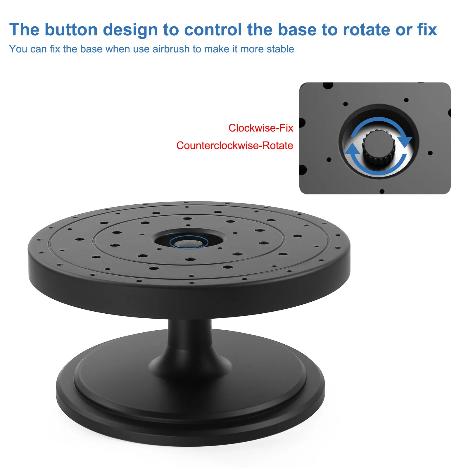 - The base rotates 360° freely, providing full access around your project, with a lockable feature to keep it steady during precise airbrushing work.