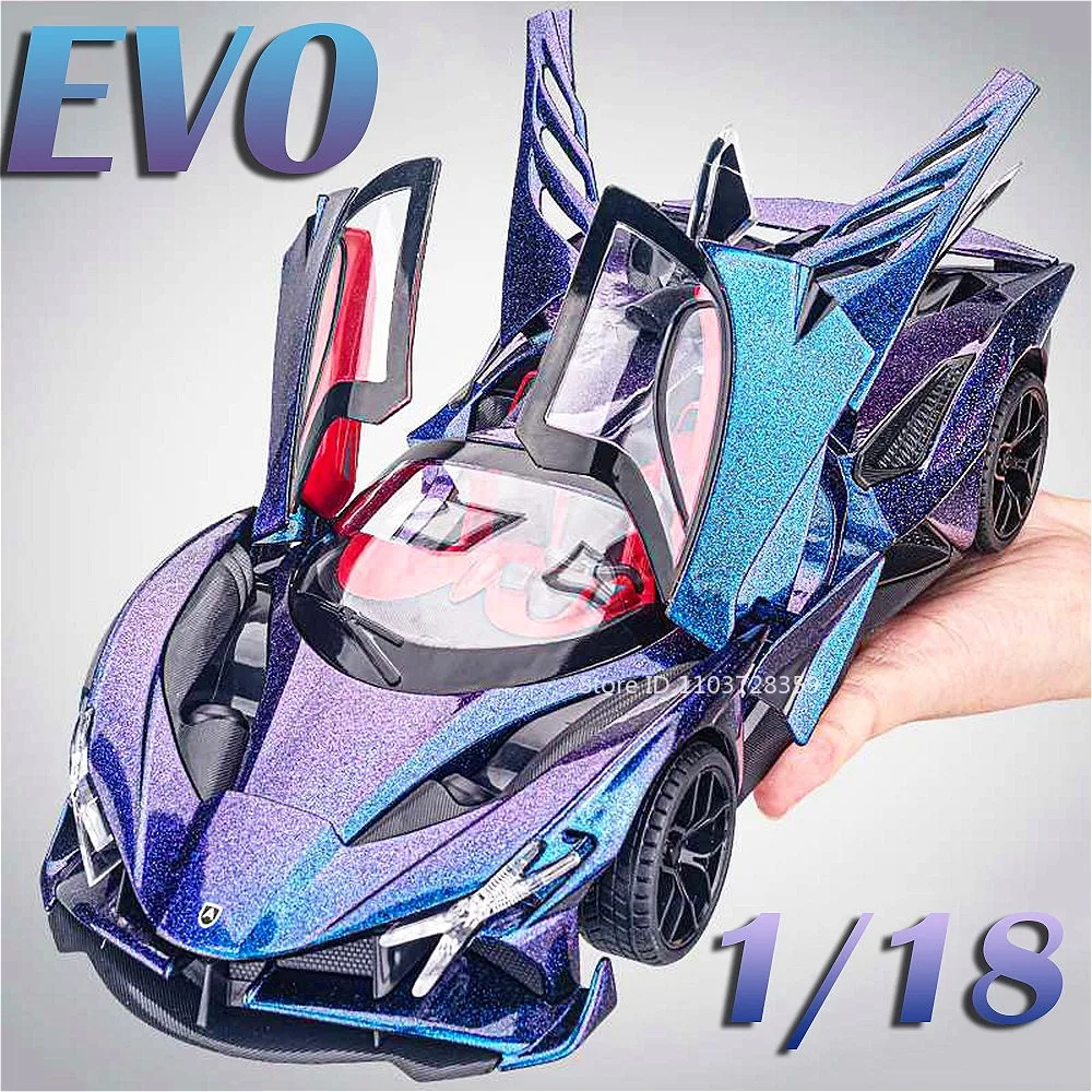 Step into the world of high-performance supercars with this detailed 1:18 scale EVO 720S toy model. Crafted with a dazzling, glittery purple finish, it exudes luxury and modern design. Its sleek, aerodynamic silhouette features sharp lines, angular headlights, a stylish front grille, and intricately designed vents, all meticulously recreated to mirror the real vehicle. The transparent windows and seamless glass elements reveal a refined interior complete with painted seats, dashboard, and steering wheel for an authentic look. The black multi-spoke wheels with textured rubber tires add realism, complemented by shock-absorbing suspensions for smooth play on various surfaces. This premium model combines high craftsmanship with engaging features, making it a perfect gift or collector's item.