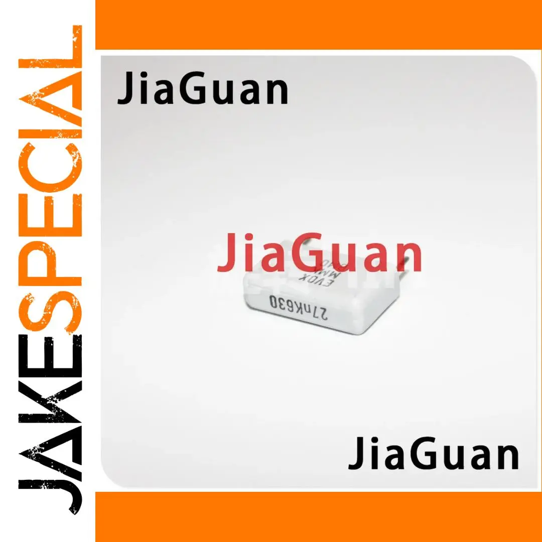 Enhance your electronic projects with the this EVOX-RIFA MMK series film capacitor. Featuring a sleek, compact rectangular design in a pure white finish, it combines minimalist aesthetics with high technical performance. This capacitor boasts a capacitance of 27 nanofarads (0.027μF or 27nF) and a voltage rating of 630V, making it ideal for audio circuitry and high-voltage applications. The precise dimensions of approximately 18mm in length, 5.5mm in width, and 10mm in height ensure easy integration into your designs. With a P15mm lead spacing and a foot diameter of 15mm, installation is straightforward. Its clean surface, marked with sharp black print detailing model number “273/630V” and technical specifications, offers clarity and reliability for your electronic components.