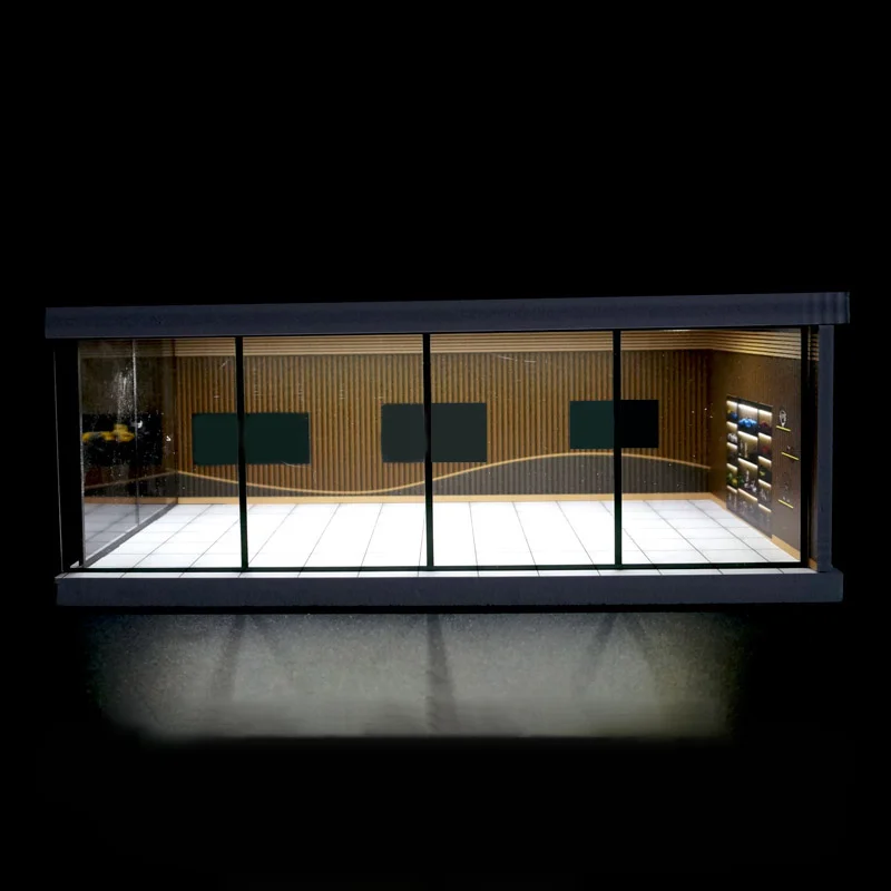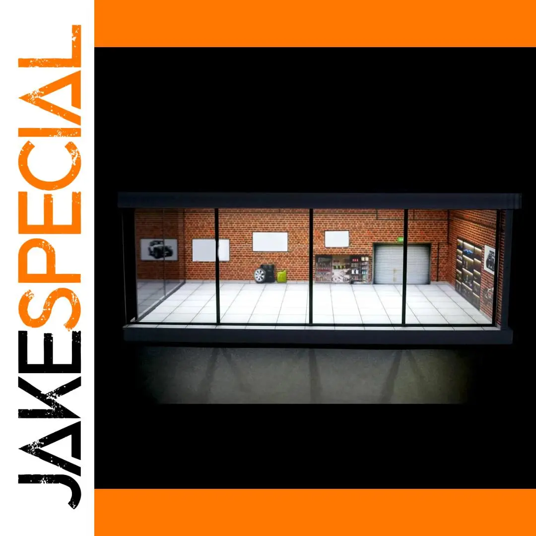 Experience the charm of urban industrial design with this detailed miniature model of an exhibition hall parking lot. Measuring approximately 30 cm in length, 17 cm in width, and 11 cm in height, this static display captures every texture and detail of a bustling urban scene. The red brick walls add warmth and authenticity, contrasting beautifully with the pristine white tiled floor that suggests cleanliness and order. Functional accessories, including display panels and miniature tools, bring the scene to life, while the grey roller shutter door hints at a garage or service bay functionality. Perfect for collectors or enthusiasts, this miniature enhances any display or diorama with its realistic aesthetic and meticulous craftsmanship.