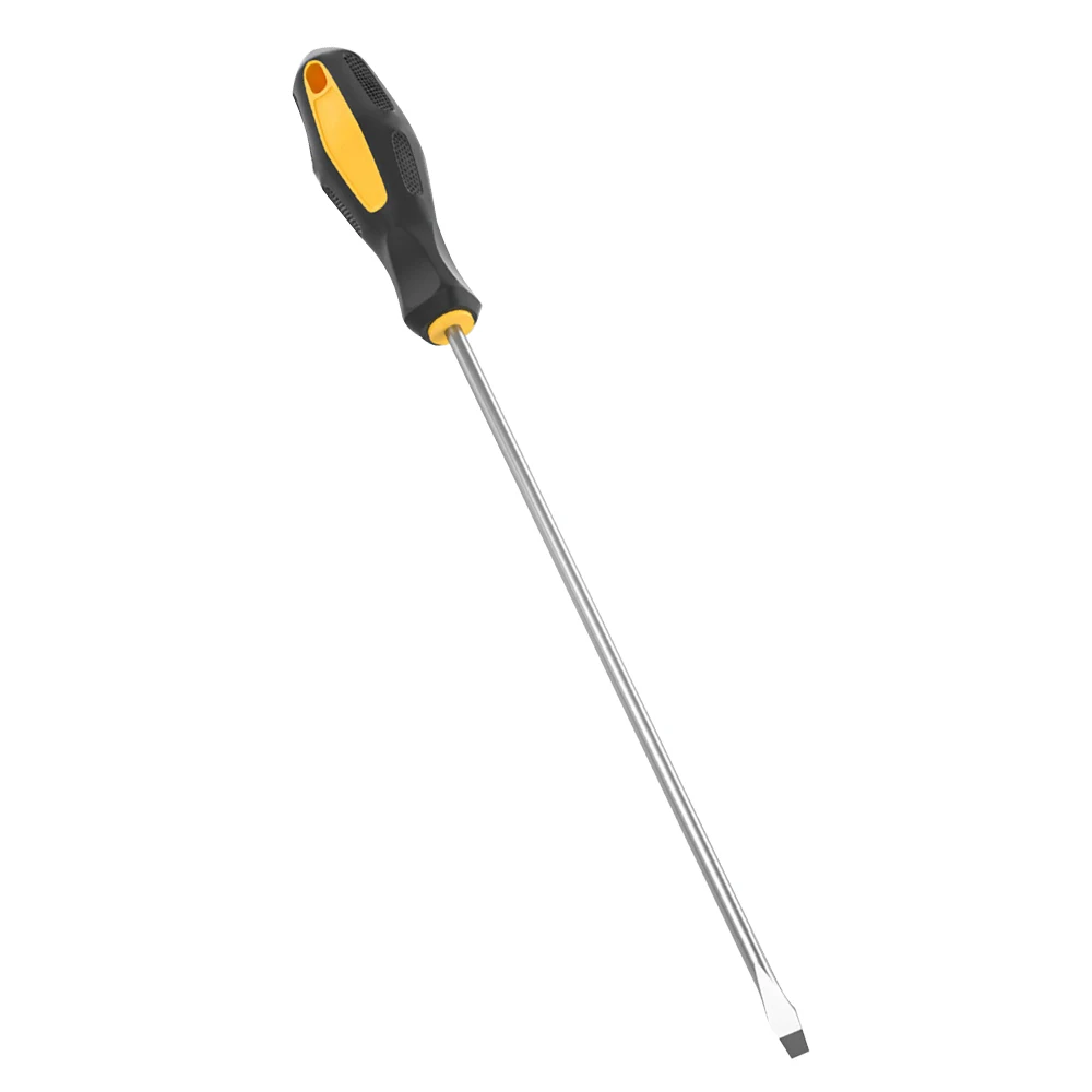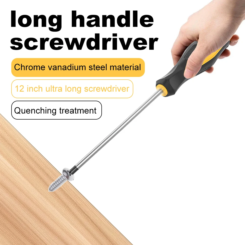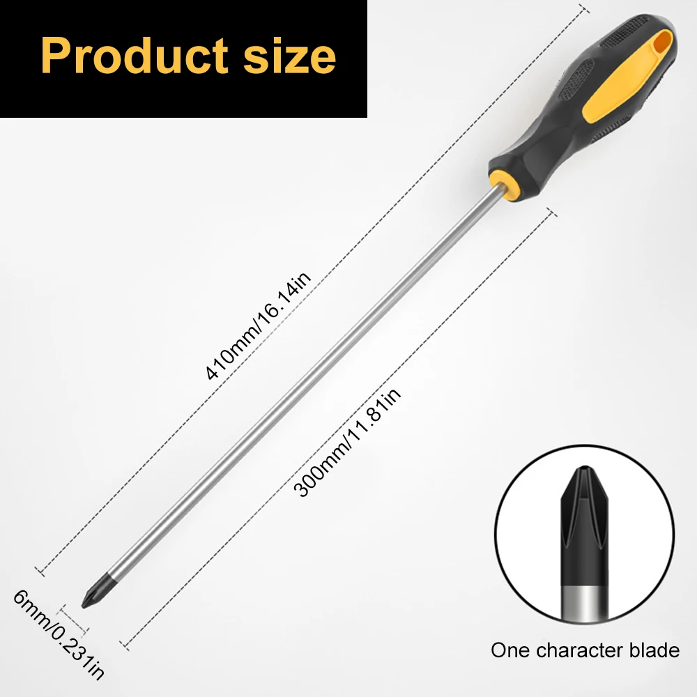Experience precision and durability with this 12-inch extended screwdriver, featuring a heat-treated chrome-vanadium steel shaft measuring 41 cm in length and weighing only 136 grams. Its magnetized Phillips and slotted heads, created through high-frequency quenching, ensure strong screw attraction and secure fitting for various repair tasks. The ergonomic rubber handle provides comfortable, non-slip grip, while the bright yellow accents enhance visibility. Ideal for computer, electrical, automotive, and general repairs, this professional-grade hand tool combines toughness with user-friendly design, making it perfect for both routine maintenance and detailed projects. Available in two color options, it’s your reliable companion for hard-to-reach screwdriving needs.
