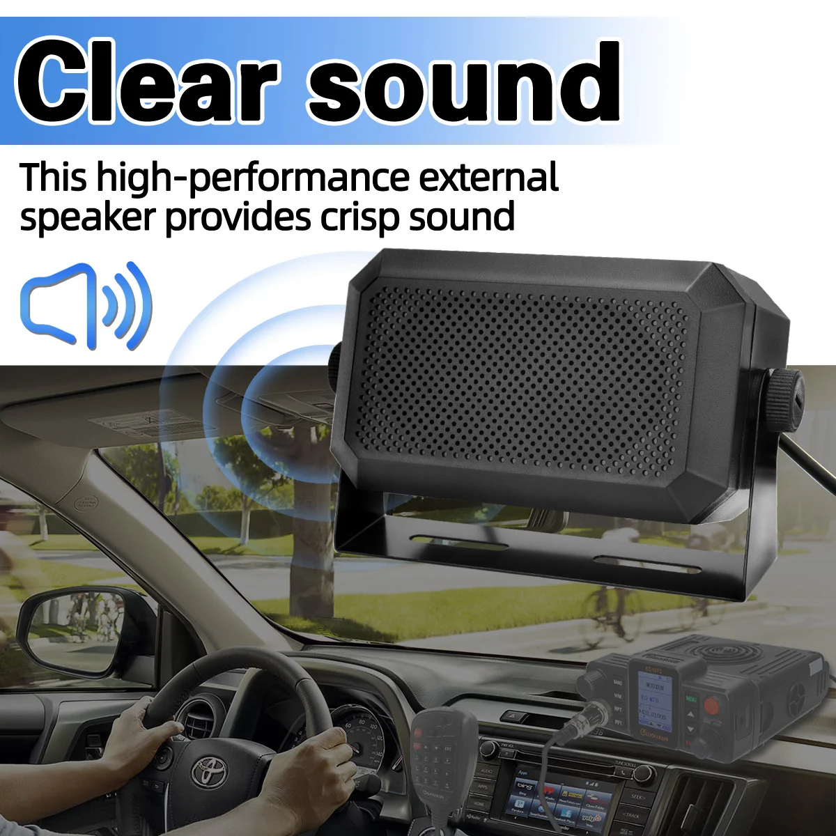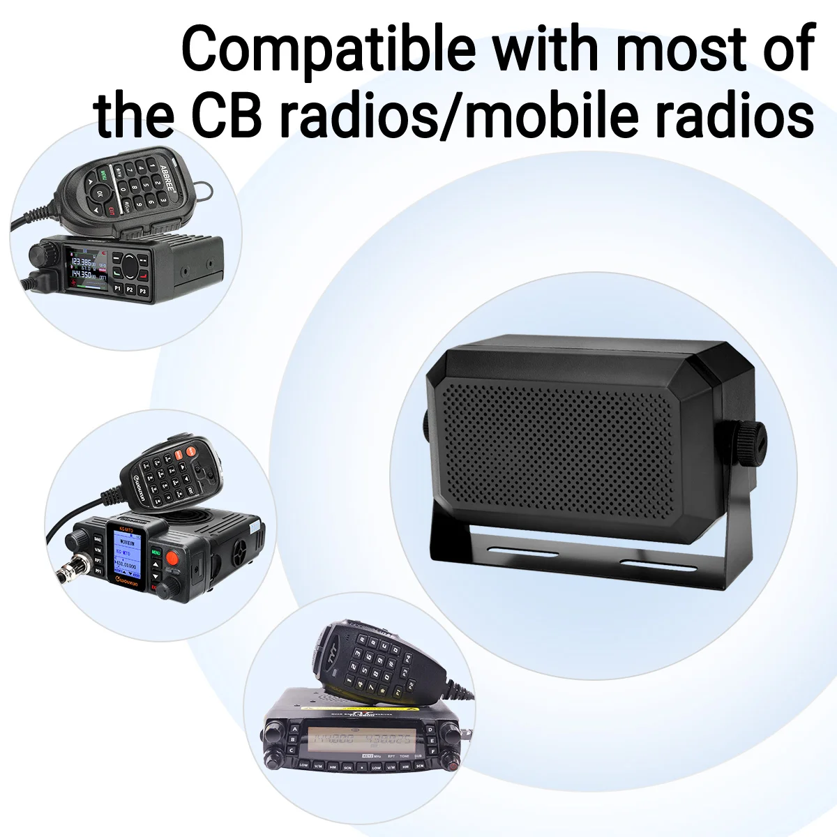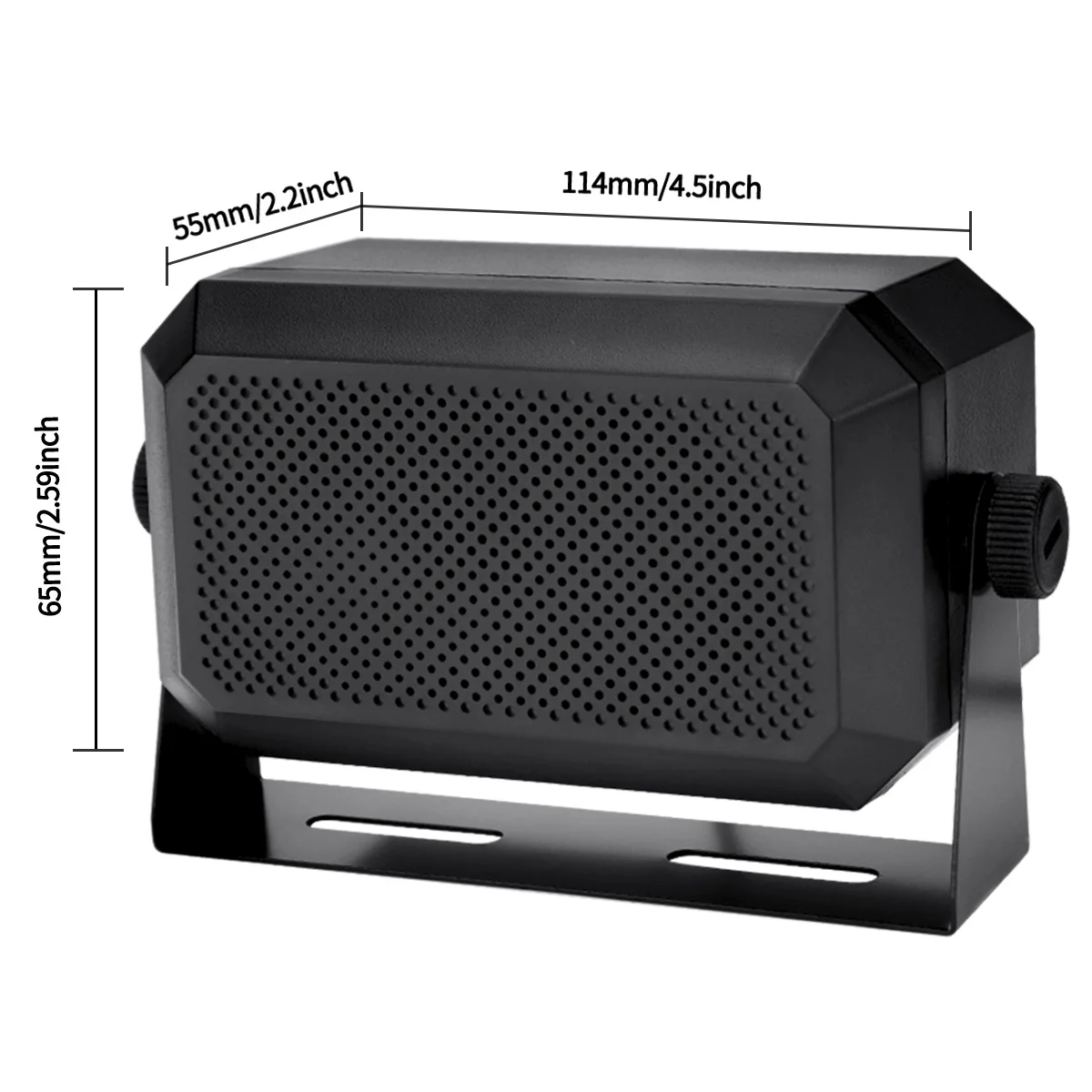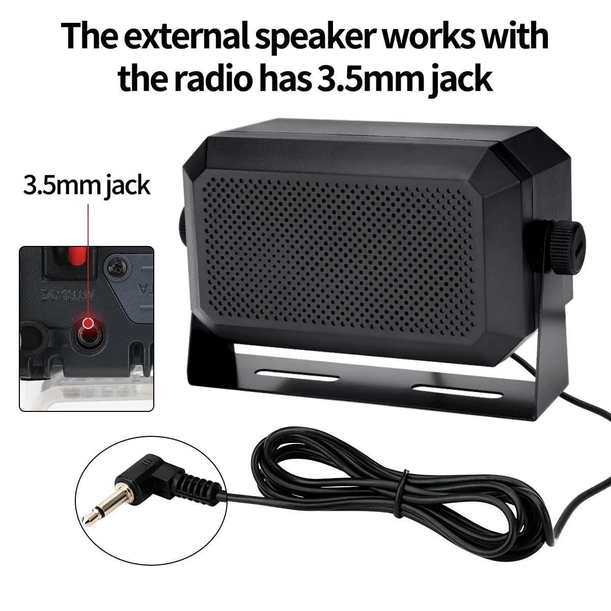Experience clear, loud sound with the ABBREE Mobile CB Radio External Speaker, model KES-3 PLUS. Measuring 114 x 65 x 55 mm and built from durable ABS and metal, this compact rectangular speaker features a 5W power output and 4Ω impedance for high-quality audio performance. Equipped with a 1.8-meter (5.9 ft) cable and a 3.5mm stereo jack, it offers seamless plug-and-play compatibility with a variety of CB radios, ham radios, and mobile transceivers. Its textured surface and perforated grille ensure durability and clear sound, making it an ideal choice for enhancing your mobile radio setup with reliable, professional-grade audio.