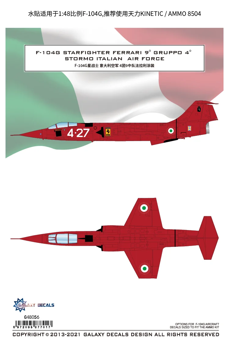 - This set includes professionally crafted masks and decals for a 1/48 scale model of the Lockheed F-104 G Starfighter, specifically representing the 9th Gruppo, 4th Stormo Italian Air Force aircraft.