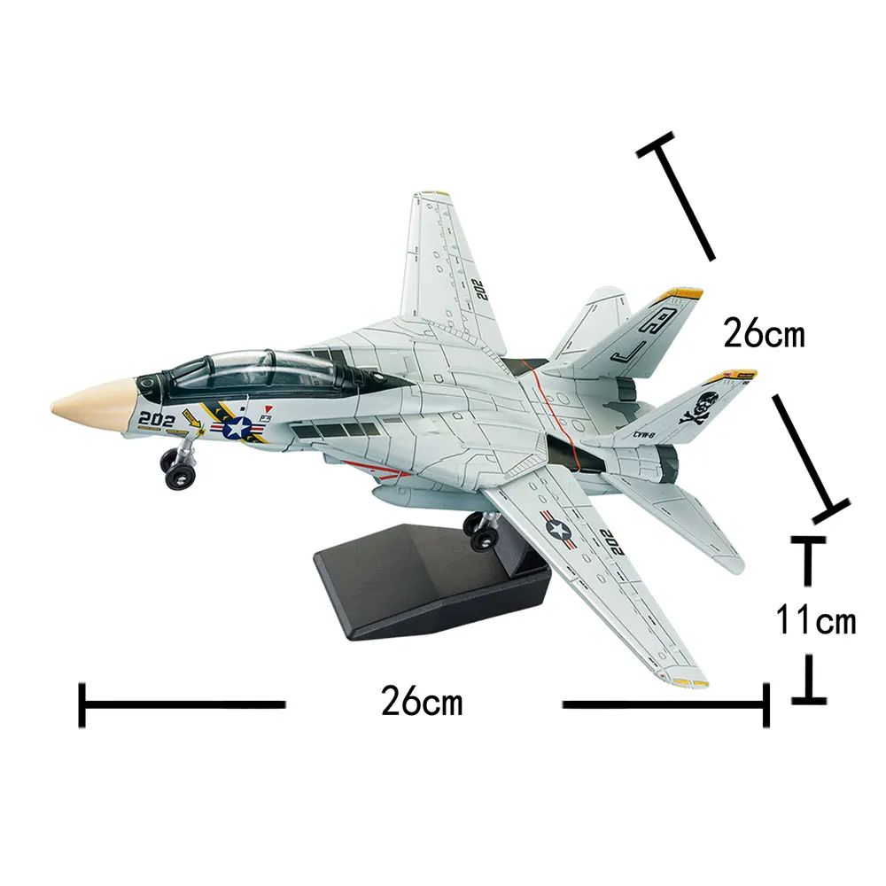 Imagine adding this highly detailed, 1/72 scale F-14 fighter jet model to your collection, showcasing sleek, aerodynamic design and realistic surface textures. Crafted from durable ABS plastic, this model boasts a striking black and white color scheme, with sharply defined panel lines, landing gear, and intricate markings such as military insignia and a bold skull emblem. Its precise craftsmanship captures the essence of a real fighter jet, perfect for aviation enthusiasts and display aficionados alike. Whether on a shelf, desk, or dedicated display case, this lightweight yet sturdy model enhances your decor with a sense of realism and technical sophistication. Its assembly process offers engaging hands-on fun, fostering a sense of pride upon completion.