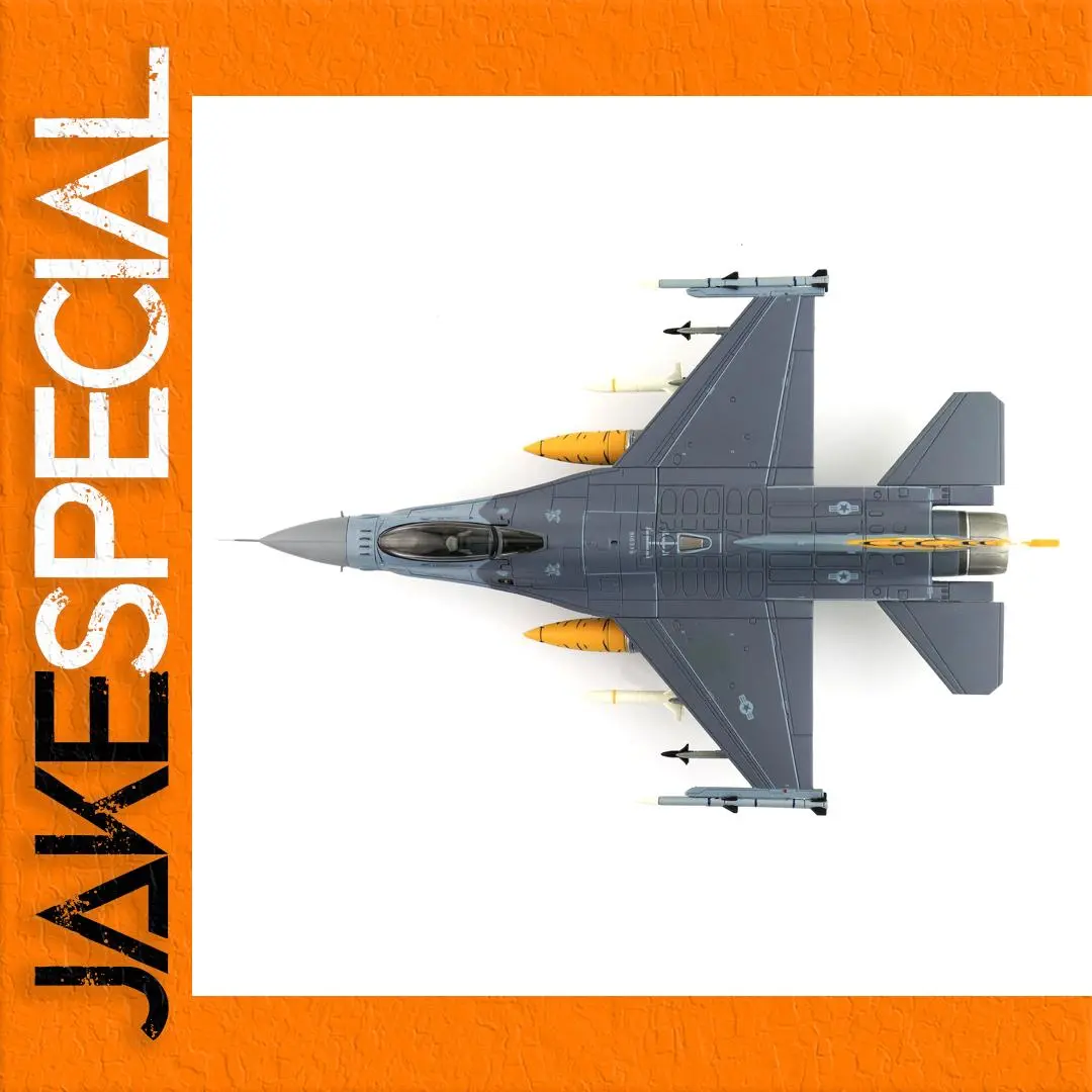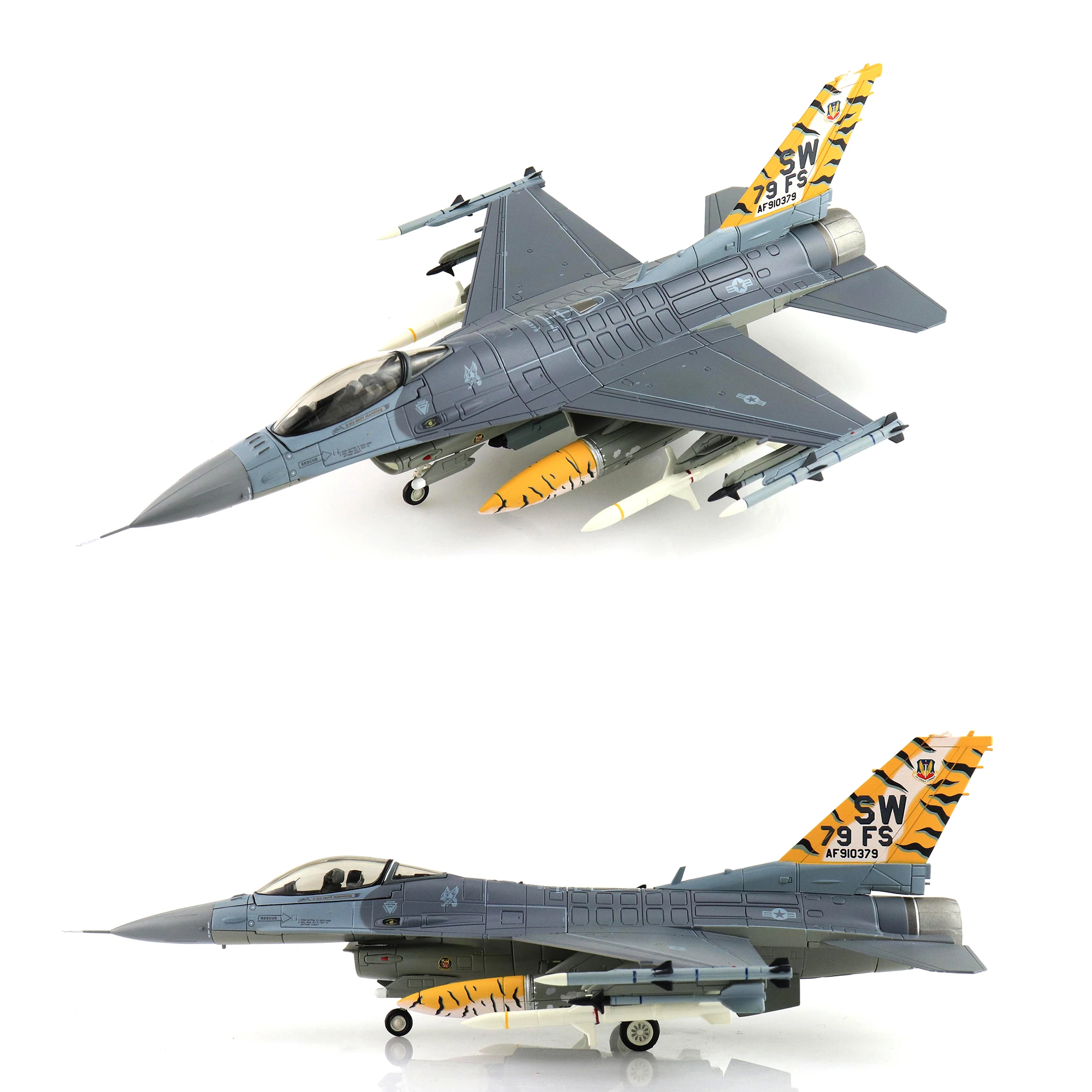 The 1/72 scale model of the F-16C fighter jet “Tiger Meet of the Americas” (91-0379, 79th FS, Oct 2005) is a stunning representation crafted from durable diecast alloy. Measuring approximately 27 centimeters in length with a wingspan of around 13 centimeters, this model features a sleek medium grey body with a matte finish and striking orange and black tiger stripes on the drop tanks. The detailed markings include unit insignias, while the cockpit showcases a pilot figure beneath a meticulously designed canopy. Perfect for collectors, this model captures the essence of military aviation artistry.