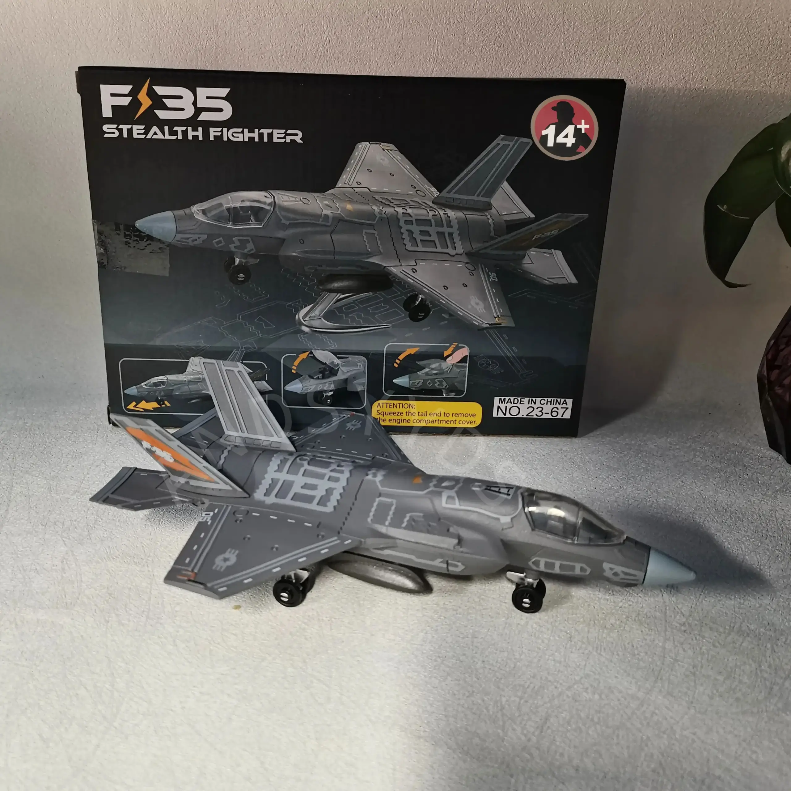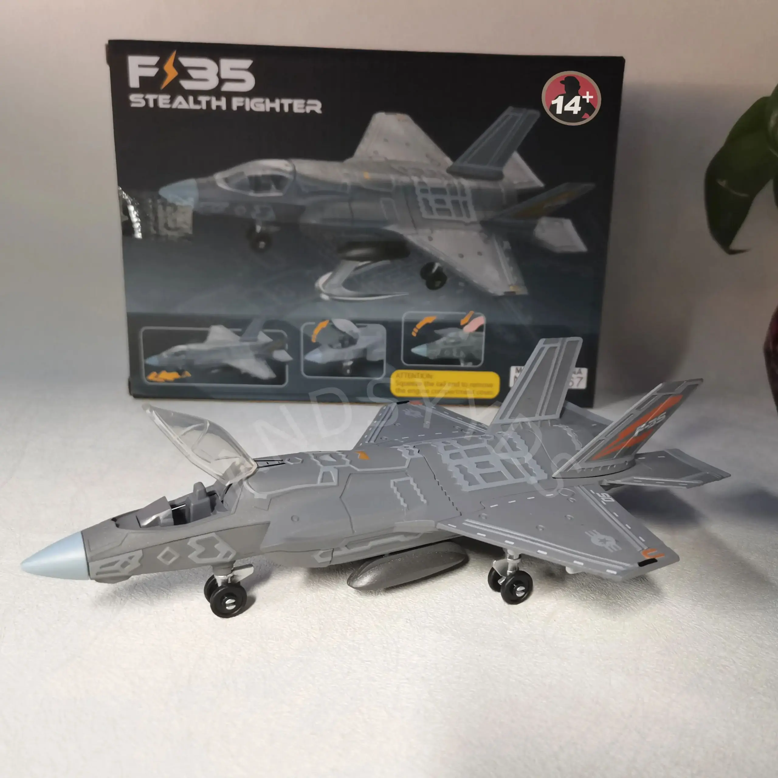 Immerse yourself in the world of aviation with this detailed 1/72 scale model of the F-35 fighter jet, measuring approximately 47 cm in length. Crafted from durable ABS plastic, it features realistic surface details, sharp angular lines, and a sleek modern design that closely resembles the actual aircraft. Designed for quick and easy assembly without glue, it’s ideal for beginners and enthusiasts alike. The kit includes a display base with landing gear, showcasing the aircraft in style. Some parts are sharp, so caution is advised during handling, making this model a perfect collectible or decorative piece for aviation lovers.