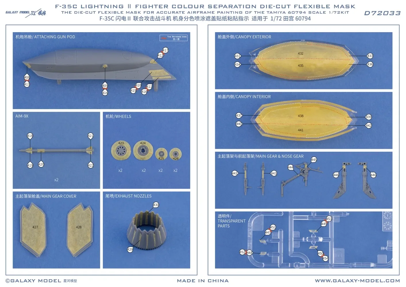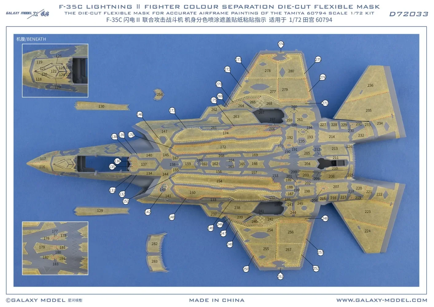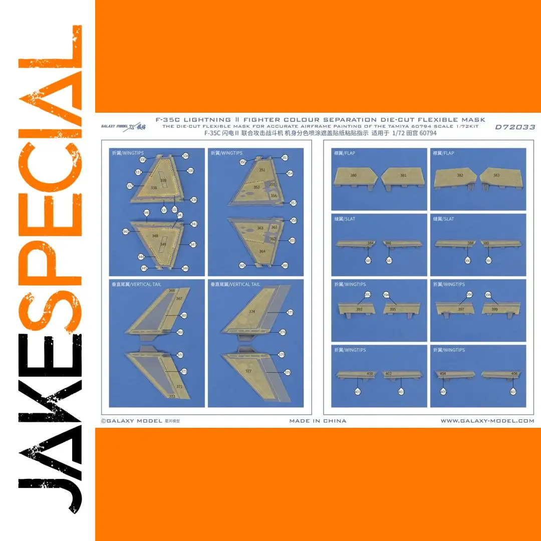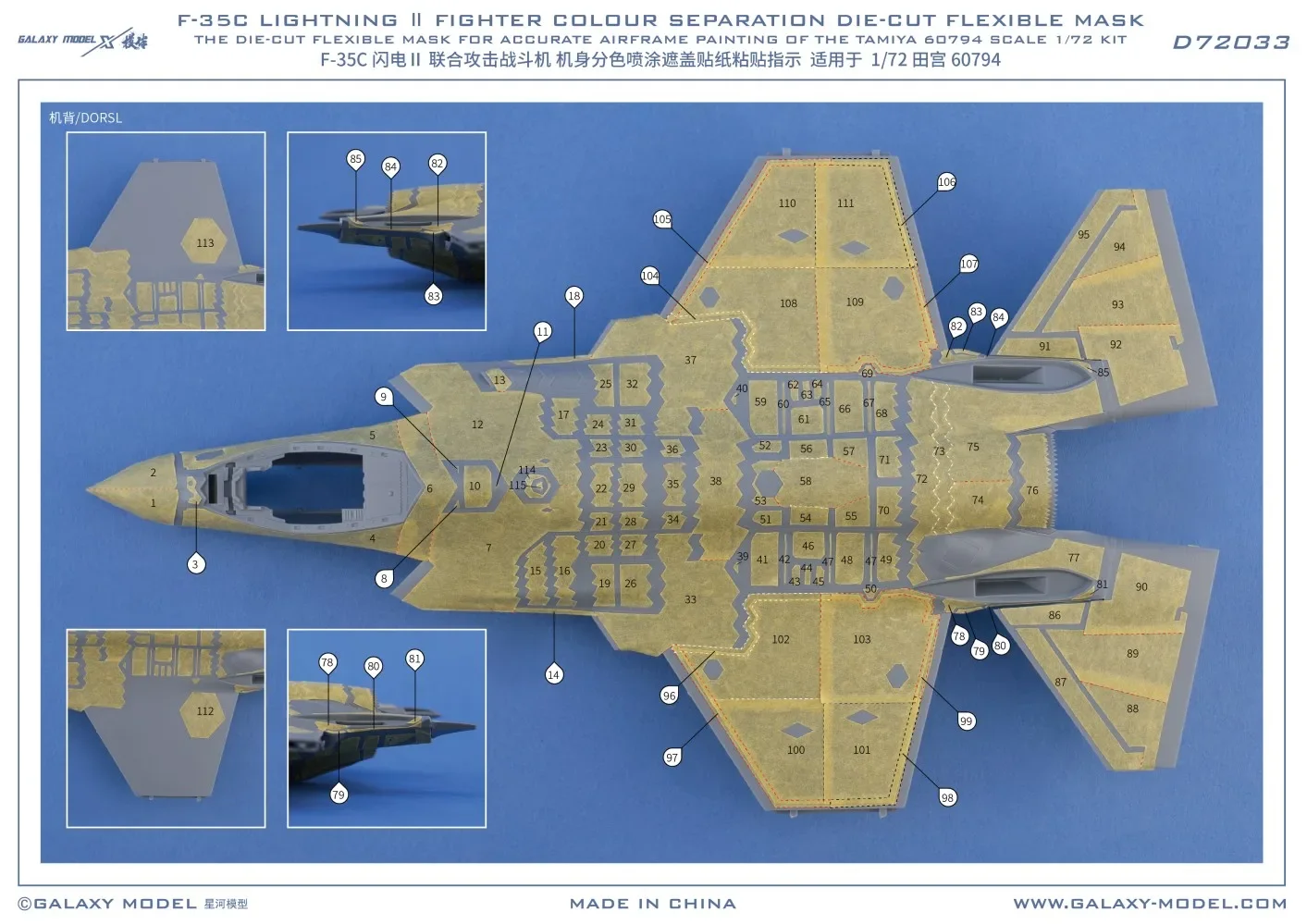 - Accurately designed for 1/72 scale Tamiya F-35C Lightning II model kit 60749, ensuring perfect fit for detailed airbrushing and painting. The masks cover intricate surfaces precisely.