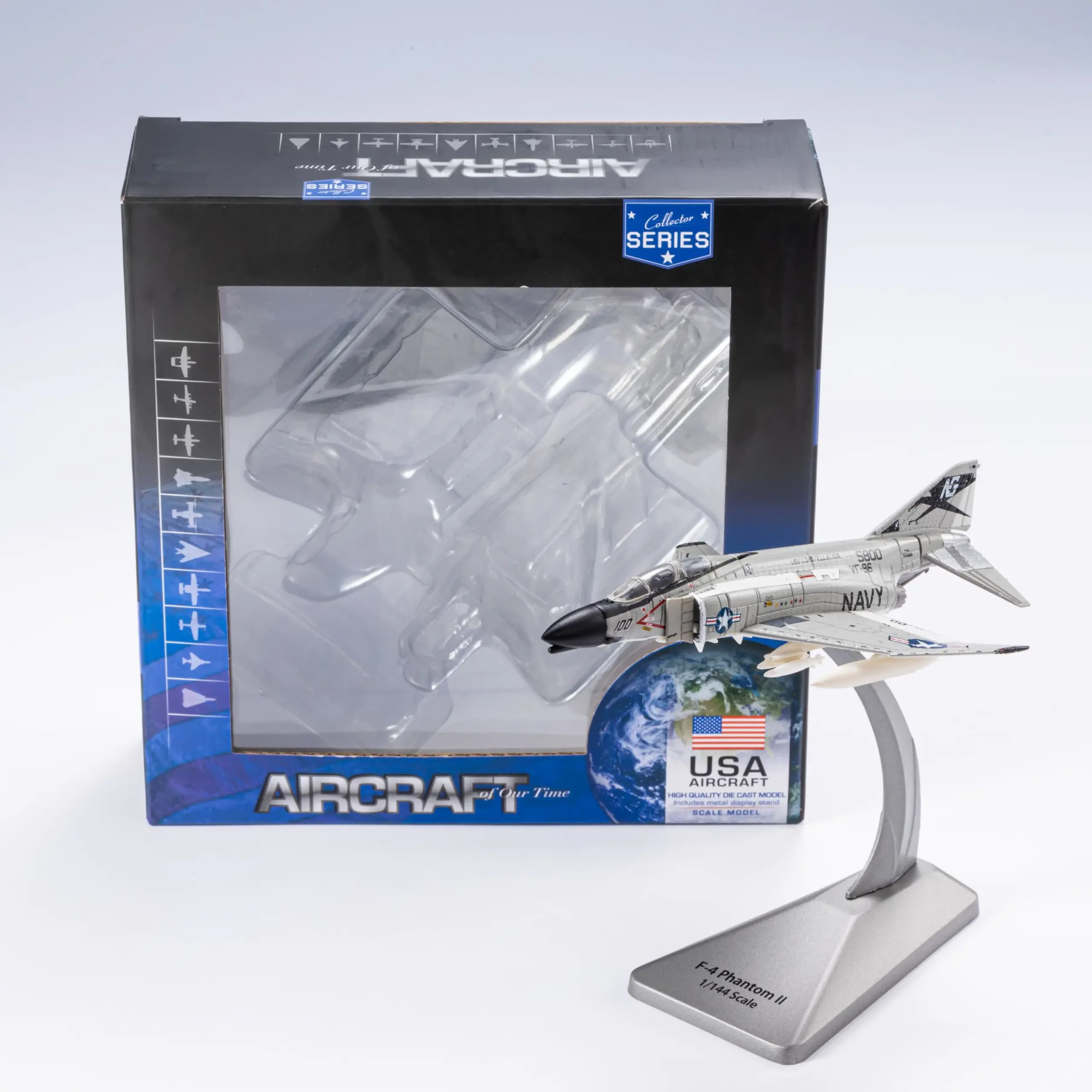 Immerse yourself in aviation history with this meticulously crafted F-4 Phantom II 1/144 scale metal model. Designed for collectors and enthusiasts, this replica captures the sleek, aerodynamic form of the iconic fighter jet. Its smooth gray finish is accented with authentic markings, decals, and surface details like panel lines and rivets, enhancing realism. The model features a sharply pointed nose, swept-back wings, and twin vertical stabilizers, all mounted on an elegant curved display stand that evokes flight. Suitable for display, decoration, or as a thoughtful gift, this model invites you to relive the spirit of military aviation with every glance. Its premium packaging ensures safe transportation and presentation.