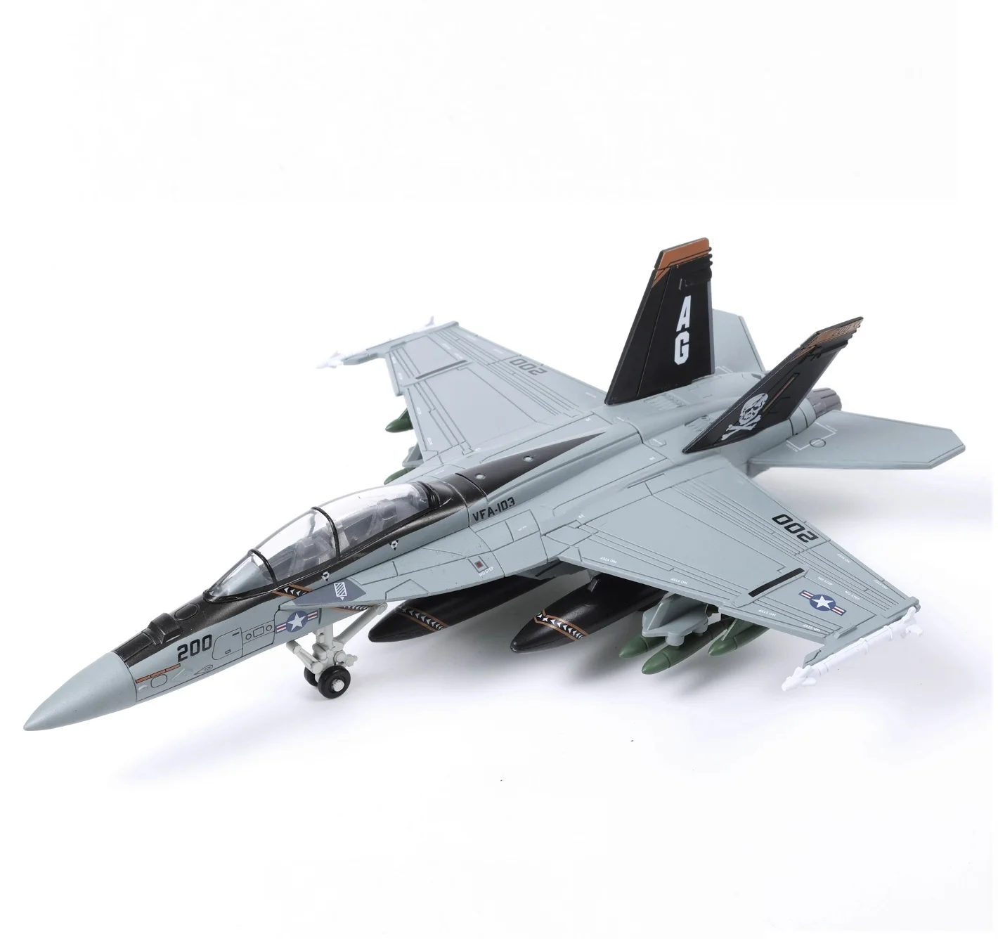 Step into the world of aviation with this highly detailed F/A-18F model, meticulously crafted at a 1:72 scale. The sleek design features smoothly swept-back wings, twin vertical stabilizers, and precise surface panel lines, capturing every aerodynamic curve of the full-sized fighter jet. Painted in a striking light gray finish, the model showcases authentic military markings, insignias, and numerals that enhance its realism. Its transparent cockpit canopy reveals intricate interior detailing, adding depth and authenticity to your collection. Perfect for display on a shelf or in a showcase, this model offers a convincing replica of the legendary aircraft, ideal for enthusiasts who appreciate precision and craftsmanship.