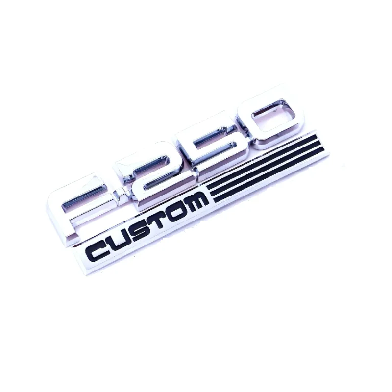 Transform the look of your vehicle with this high-quality, customized F250 badge. Crafted from durable ABS plastic, it boasts a sleek, modern design with a shiny, reflective finish that instantly elevates your truck's appearance. Available in two striking color options—F250 CUSTOM and F250 XLT LARIAT—this badge offers personalization to perfectly match your vehicle's style. Its bold 3D lettering and polished surface lend a professional, sophisticated touch that makes your truck stand out. Easy to install with a strong adhesive, it securely fits on the trunk area, providing a seamless, integrated look. Whether for branding, decoration, or showing off your truck's specific model, this badge adds a unique, premium detail you’ll love.