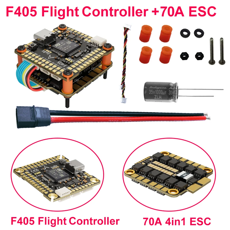 - Equipped with a 70A 4-in-1 ESC, enabling powerful motor control and efficient power delivery.