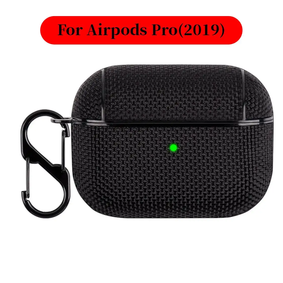 Protect your Apple AirPods with this versatile fabric canvas silicone case, designed for AirPods 3, AirPods 2/1, AirPods Pro, and AirPods Pro 2. Crafted from durable plastic with a textured canvas overlay, it provides excellent shell protection while maintaining a sleek, ergonomic shape that fits snugly around your earbuds. The case features a glossy interior for easy insertion and removal, a precise cutout for charging port access, and a sturdy black metal carabiner clip for convenient attachment to bags or keychains. Available in multiple colors, this stylish, functional accessory ensures your wireless earphones stay secure and protected in everyday use.