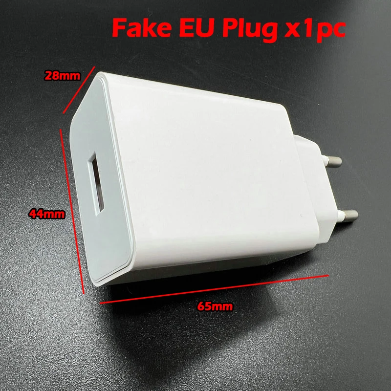 - Available models: Fake EU Plug and Fake US Plug, each featuring realistic prong design (European two round prongs or American parallel flat prongs) for authenticity.